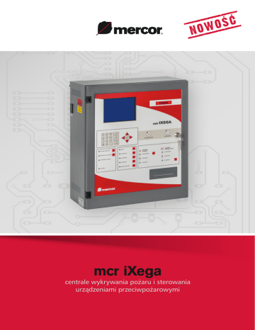N mcr iXega centrale wykrywania pożaru i sterowania urządzeniami przeciwpożarowymi C S O OW ZASTOSOWANIE Centrala mcr iXega poszerza ofertę automatyki pożarowej Mercor SA o nowe rozwiązanie w zakresie sterowania systemami wentylacji pożarowej i bytowej, różnicowania ciśnienia oraz wentylacji strumieniowej, które gwarantują bezpieczeństwo przebywającym w budynkach osobom oraz mieniu. Doskonale uzupełnia dotychczasowy asortyment firmy, współpracując z takimi produktami Mercoru, jak: przeciwpożarowe klapy odcinające, przeciwpożarowe klapy odcinające do systemów wentylacji pożarowej, klapy transferowe, zawory przeciwpożarowe, wentylatory oddymiające, wentylatory nawiewno-wywiewne, wentylatory strumieniowe. mcr iXega zarządza elementami adresowalnego systemu automatycznego wykrywania pożaru oraz koordynuje pracę urządzeń w tym systemie. Centrala inicjuje alarm pożarowy oraz steruje urządzeniami sygnalizacyjnymi i przeciwpożarowymi. Wykorzystywana jest również do sterowania oddzieleniami przeciwpożarowymi i systemami oddymiania grawitacyjnego, a także przekazuje informacje do centrum monitorowania lub systemu nadzoru budynku. mcr iXega może być stosowana do ochrony przeciwpożarowej różnego rodzaju obiektów średniej wielkości, np. hoteli, banków, magazynów, obiektów zabytkowych, inteligentnych budynków itp. BUDOWA Centrala mcr iXega ma budowę modułową, pozwalającą efektywnie zarządzać budynkiem w zakresie wykrywania pożaru i sterowania urządzeniami pożarowymi. Na froncie centrali znajduje się wyświetlacz ciekłokrystaliczny, który pozwala zarówno obserwować stan systemu (elementy sygnalizacyjne), jak i ułatwia programowanie (elementy manipulacyjne). Centrala wyposażona jest w drukarkę termiczną, zapewniającą wydruki informacji o zdarzeniach w sposób uporządkowany według daty i czasu wystąpienia. W celu zapewnienia zasilania rezerwowego centrala wyposażona jest w akumulatory o pojemności 17-38 Ah w zależności od zapotrzebowania systemu. Świadectwo dopuszczenia nr 2539/2015 Certyfikat stałości własności użytkowych 1438-CPR-0436 2 OPIS DZIAŁANIA Centrala mcr iXega posiada cztery pętle adresowalne z możliwością adresowania po 64 elementy liniowe w każdej pętli. Linie dozorowe mogą pracować w układzie pętlowym lub promieniowym. Pętlowy system pracy linii eliminuje uszkodzenia w instalacji w postaci przerwy lub zwarcia fragmentu linii. Dodatkowo centrala kontroluje i sygnalizuje przekroczenie dopuszczalnych parametrów rezystancji i pojemności przewodów linii dozorowej. Przy projektowaniu instalacji dopuszcza się pojedyncze odgałęzienia od głównego ciągu linii pętlowej, co bardzo upraszcza prowadzenie okablowania. W centrali można utworzyć programowo 256 stref dozorowych, którym można przyporządkować dowolne komunikaty użytkownika. W przypadku alarmu komunikaty te pojawiają się na wyświetlaczu centrali, pozwalając obsłudze na szybką i precyzyjną lokalizację źródła pożaru Centrala mcr iXega może bezpośrednio realizować sterowanie urządzeniami sygnalizacyjnymi i przeciwpożarowymi poprzez wbudowane dwie grupy wyjść sterujących. Są to: 8 nadzorowanych przekaźników z bezpotencjałowymi stykami przełączanymi, 2 nadzorowane linie sterujące. Urządzenie współpracuje również z autonomicznymi dedykowanymi modułami WE/WY, które rozszerzają możliwości centrali. Centrala mcr iXega pamięta i rejestruje 2000 ostatnich zdarzeń, które miały miejsce podczas dozorowania obiektu oraz ma licznik alarmów pożarowych – maksymalnie 9999 alarmów. Konfiguracja Konfiguracja wykonanej instalacji wpisywana do pamięci centrali może odbywać się poprzez: konfigurację automatyczną - gdy centrala samoczynnie analizuje rozmieszczenie elementów w każdej pętli (nawet w przypadku pętli z pojedynczymi odgałęzieniami) i na tej podstawie wpisuje do swojej pamięci konfigurację instalacji, a do pamięci elementów liniowych wpisuje ich kolejny numer – adres, konfigurację instalatorską - w tej opcji instalator, na podstawie danych zawartych w projekcie, przygotowuje konfigurację instalacji w postaci pliku danych (przy wykorzystaniu specjalnego oprogramowania komputerowego dostarczanego przez producenta), który wprowadza do pamięci centrali. Te czynności mogą być wykonane z wykorzystaniem klawiatury komputerowej podłączonej bezpośrednio do centrali. Centrala weryfikuje wprowadzone dane i porównuje je z rzeczywistymi danymi odczytanymi z zainstalowanych elementów liniowych. Jeżeli dane są zgodne, wówczas centrala automatycznie nadaje numery elementom liniowym, konfigurację ręczną - która pozwala na dowolne konfigurowanie elementów w linii, bez konieczności zachowania kolejności numerowania elementów. Metoda ta umożliwia wprowadzanie zmian w instalacji, np. po wymianie czujki. Warianty alarmowania W centrali mcr iXega dla każdej strefy dozorowej można zaprogramować jeden z 17 wariantów alarmowania. Różne warianty alarmowania, programowane w konkretnych strefach, pozwalają na poprawne wykorzystanie systemu wykrywania pożaru w określonych indywidualnych warunkach panujących w strefie pożarowej. Możliwe warianty alarmowania przez centralę mcr iXega: alarmowanie zwykłe, alarmowanie z jednokrotnym kasowaniem, alarmowanie z koincydencją dwuczujkową, alarmowanie z koincydencją grupowo-czasową. 3 SCHEMAT SYSTEMU Przykładowy schemat systemu wykrywania pożaru i sterowania urządzeniami przeciwpożarowymi w oparciu o centralę mcr iXega: KD mcr 9705 mcr IO12 mcr IO12 mcr iXega mcr IO12 mcr Omega mcr IM8 mcr OM8 M M KD klapa dymowa M mcr 9705 moduł sterujący wentylator oddymiający centrala oddymiania czujka dymu mcr Omega sygnalizator akustyczno-optyczny centrala zasilająco-sterująca wentylacji pożarowej adapter linii bocznej centrala wentylacji bytowej przycisk ROP M przepustnica M klapa przeciwpożarowa ZALETY Zalety centrali mcr iXega: 