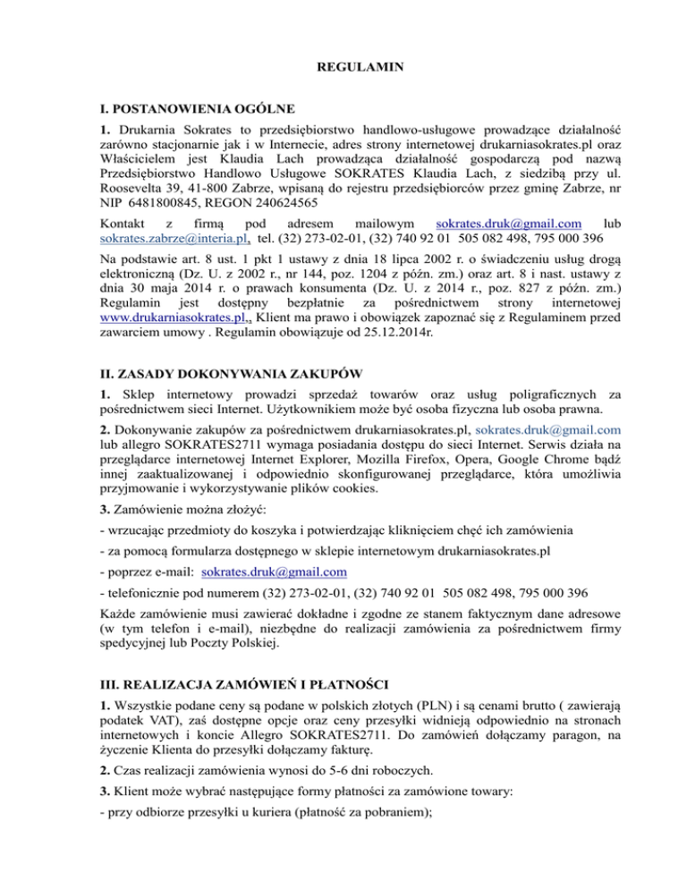 Regulamin - Drukarnia Sokrates Zabrze