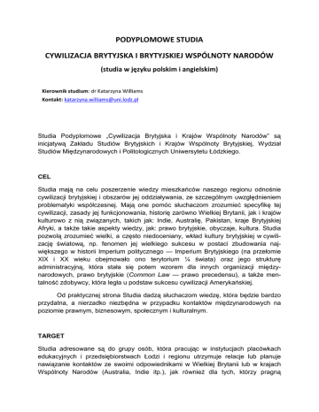 podyplomowe studia cywilizacja brytyjska i brytyjskiej wspólnoty