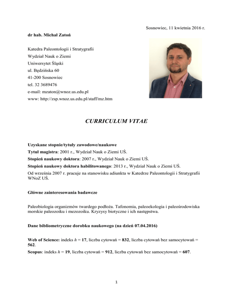 dr hab. Michał Zatoń - Wydział Nauk o Ziemi