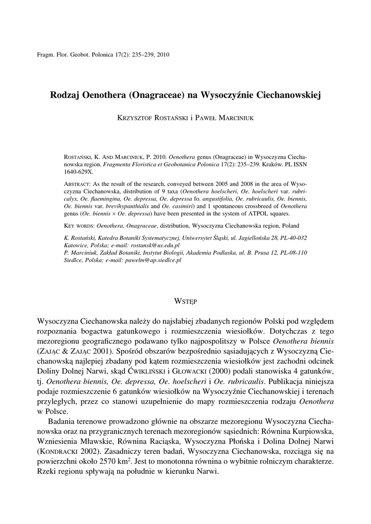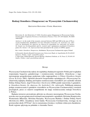 Rodzaj Oenothera (Onagraceae) na Wysoczyźnie Ciechanowskiej