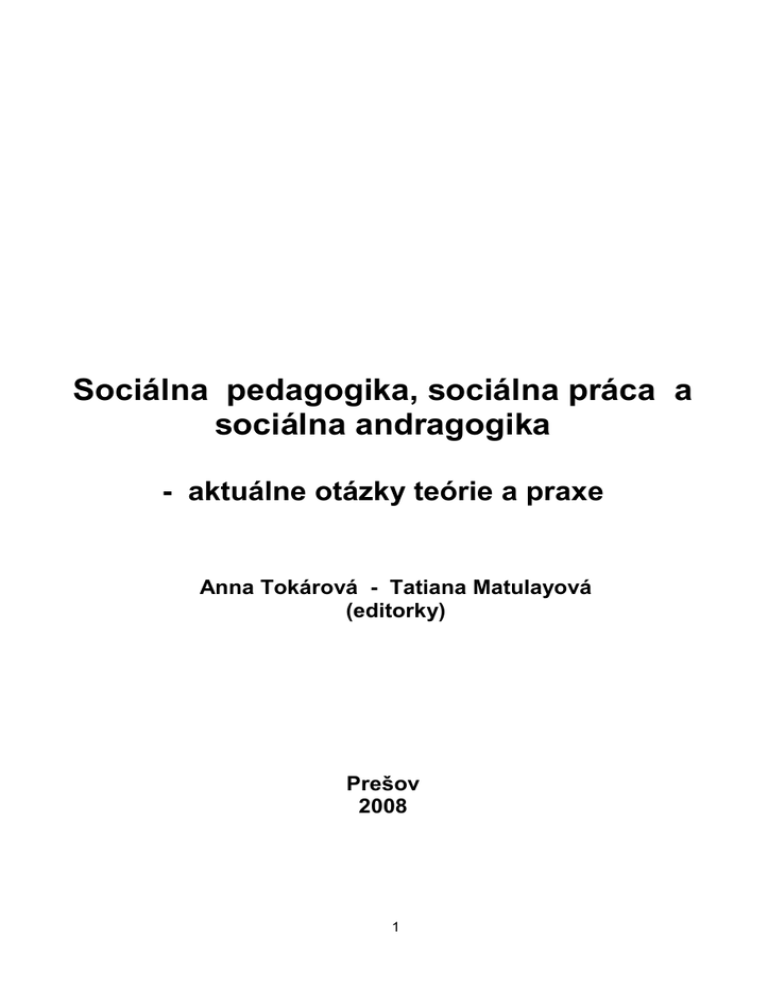 Editorky: prof. PhDr. Anna Tokárová, CSc., doc. PaedDr. Tatiana Matulayová, PhD.