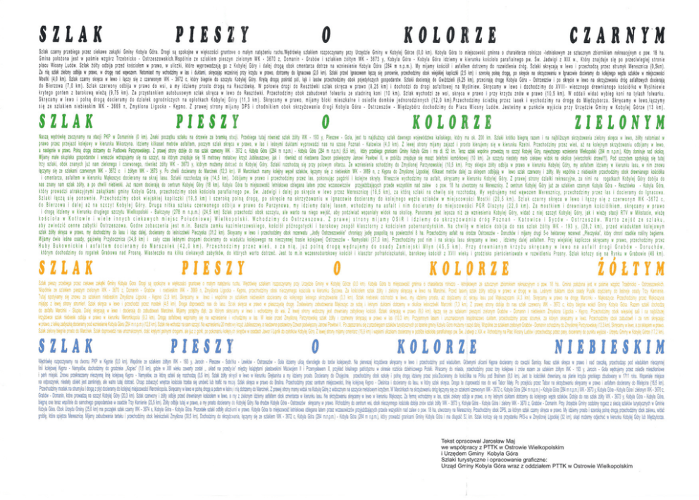 czarny przebiega przez cietawe zalatli GminyKobyla Góra. Drogi sa spolojne w wiekszosci gruntoweo malymnalezeniu ruchu.Wedrówkeszlakiemrozpoczynamyprzy UrzedzieGminy w Kobylej Górze (0,0 kmI. Kobyla Góra lo miejscowoscgminnao charakterzerolniczo .Ielniskowymze sztucznymzbiornikiem rekreacyjnymo pow. 18 ha.