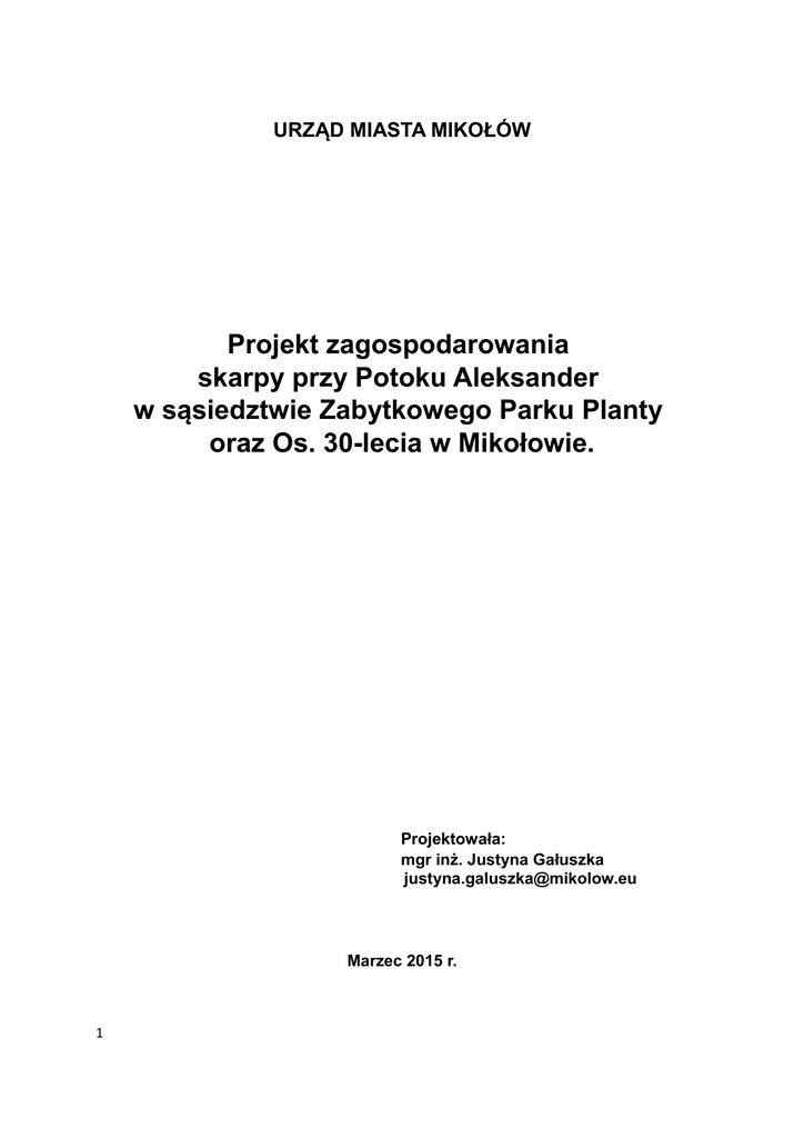 URZĄD MIASTA MIKOŁÓW Projekt zagospodarowania skarpy przy