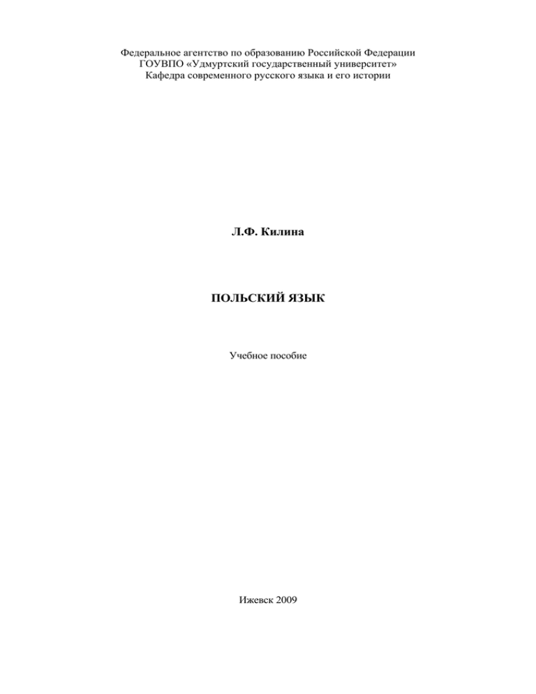 Л.Ф. Килина ПОЛЬСКИЙ ЯЗЫК - Удмуртский государственный