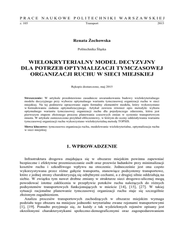 tymczasowej organizacji ruchu wykorzystano wielokryterialną metodę TOPSIS.