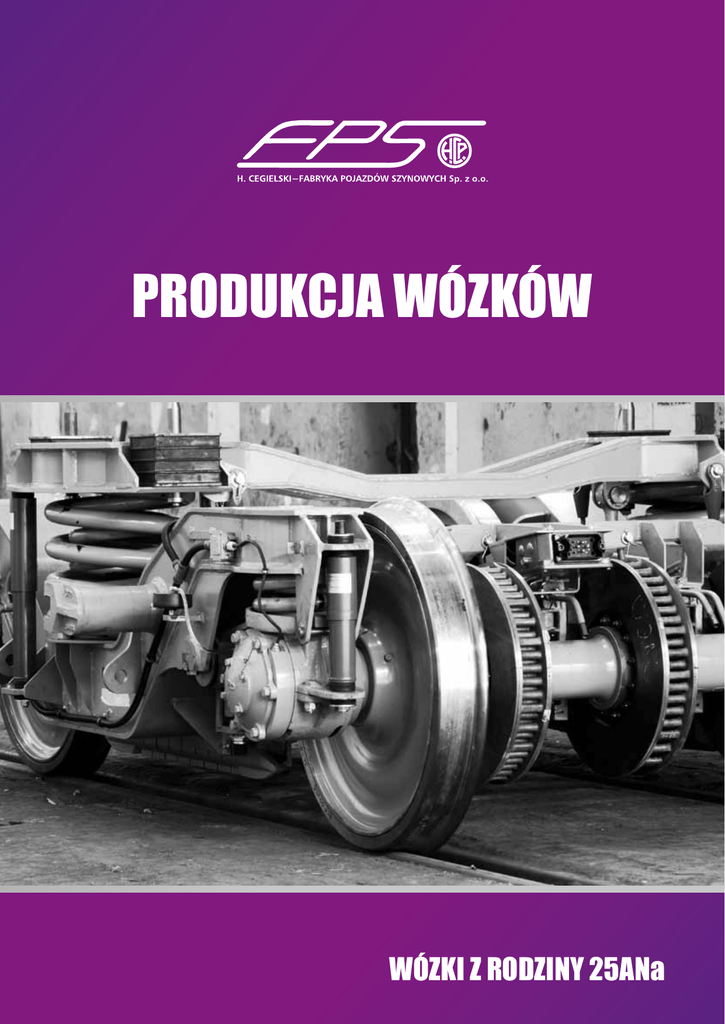 Produkcja wózków Wózki z rodziny 25ANa Wózki z rodziny 25ANa przeznaczone do wagonów osobowych od ponad 15 lat eksploatowane są z powodzeniem na polskich torach oraz w komunikacji międzynarodowej na torach europy zachodniej. Wózki z rodziny 25ANa charakteryzują się bardzo dobrymi właściwościami biegowymi oraz bardzo wysokim komfortem jazdy wagonów w nie wyposażonych. W trakcie eksploatacji wózki te nie wymagają obsługi. Zastosowane rozwiązania gwarantują zminimalizowanie prac obsługowo-naprawczych w całym okresie życia wózków - niskie LCC. Konstrukcja wózków umożliwia ich łatwą zabudowę do nowo konstruowanych wagonów jak i wagonów modernizowanych w trakcie napraw okresowych. Szeroki zakres zastosowań potwierdza ich doskonałą konstrukcję. Wózki te stosowane są między innymi w wagonach: sypialnych, przedziałowych pierwszej i drugiej klasy, bezprzedziałowych pierwszej i drugiej klasy, z przedziałami klasy business. Wózki są eksploatowane m.in. pod następującymi typami wagonów: 156A,157Aa,158A,159A, 154Aa, 305Ad, 152Aa, 144Aa. Podstawowe dane techniczne wózków 25ANa | 25AN: 1. Szerokość toru: 1435 mm 2. Rozstaw osi zestawów kołowych: 2500 mm 3. Średnica koła nowego: Ø920 mm 4. Średnica koła zużytego: Ø854 mm 5. Prędkość maksymalna: 200 km/h | 160km/h 6. Maksymalny nacisk zestawu kołowego: 16 ton/oś 7. Masa wózka: 7400 kg | 7000kg Krótka charakterystyka wózków z rodziny 25ANa: • rama spawana w kształcie litery H; • nie zużywające się, wahaczowe prowadzenie zestawów kołowych; • zawieszenie pierwszego stopnia – sprężyny śrubowe; • zawieszenie drugiego stopnia – sprężyny śrubowe; • zestaw kołowy z kołami monoblokowymi oraz 3 tarczami hamulcowymi lub alternatywnie dla mniejszych prędkości 2 tarcze hamulcowe; • wyposażony w hamulec szynowy magnetyczny; • tłumienie drgań – tłumiki hydrauliczne pionowe w pierwszym i drugim stopniu usprężynowania, poziome tłumiki hydrauliczne oraz hydrauliczny tłumik wężykowania; • połączenie wózka z pudłem za pomocą centralnego czopa skrętu; • oparcie pudła na belce poprzecznej za pomocą bloków metalowo-gumowych; • przeniesienie sił wzdłużnych wózek – pudło wykonane jako bezluzowe i bezobsługowe;