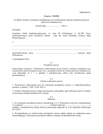 Umowa - WZÓR na zakup i dostawę, instalację, konfigurację oraz