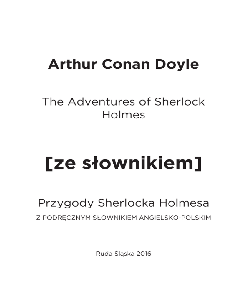 Arthur Conan Doyle The Adventures of Sherlock Holmes [ze słownikiem] Przygody Sherlocka Holmesa Z PODRĘCZNYM SŁOWNIKIEM ANGIELSKO-POLSKIM Ruda Śląska 2016 CONTENTS Vocabulary of Most Common Words...................................................................................... 7 Adventure 1. A Scandal in Bohemia ......................................................................................... 43 Adventure 2. The Red-Headed League .................................................................................. 81 Adventure 3. A Case of Identity ................................................................................................ 119 Adventure 4. The Boscombe Valley Mystery ...................................................................... 149 Adventure 5. The Five Orange Pips......................................................................................... 189 Adventure 6. The Man with the Twisted Lip ........................................................................ 221 Adventure 7. The Adventure of the Blue Carbuncle ........................................................ 259 Adventure 8.The Adventure of the Speckled Band.......................................................... 293 Adventure 9. The Adventure of the Engineer’s Thumb .................................................. 335 Adventure 10. The Adventure of the Noble Bachelor...................................................... 369 Adventure 11. The Adventure of the Beryl Coronet .......................................................... 403 Adventure 12. The Adventure of the Copper Beeches .................................................... 443 Vocabulary.......................................................................................................................................... 483 Adventure 1. A S candal in Bohemia I. To Sherlock Holmes she is always the woman. I have seldom heard him mention her under any other name. In his eyes she eclipses and predominates the whole of her sex. It was not that he felt any emotion akin to love for Irene Adler. All emotions, and that one particularly, were abhorrent to his cold, precise but admirably balanced mind. He was, I take it, the most perfect reasoning and observing machine that the world has seen, but as a lover he would have placed himself in a false position. He never spoke of the softer passions, save with a gibe and a sneer. They were admirable things for the observer— excellent for drawing the veil from men’s motives and actions. But for the trained reasoner to admit such intrusions into his own delicate and finely adjusted temperament was to introduce a distracting factor which might throw a doubt upon all his mental results. Grit in a sensitive instrument, or a crack in one of his own high-power lenses, would not be more disturbing than a strong emotion in a nature such as his. And yet there was but one woman to him, and that woman was the late Irene Adler, of dubious and questionable memory. I had seen little of Holmes lately. My marriage had drifted us away from each other. My own abhorrent - RGUDůDMĊF\ZVWUęWQ\ adjusted - DGMXVWZ\UHJXORZDý QDVWDZLýSRSUDZLýGRSDVRZDý admirable - ]DFKZ\FDMĊF\ admirably - w sposób godny podziwu adventure - U\]\NRZDýSU]\JRGD akin - pokrewny Bohemia - bohema, cyganeria crack - SęNDýWU]DVQĊýWU]DVN delicate - delikatny distracting - GLVWUDFW UR]SURV]\ý]DEDZLDýUR]HUZDý disturbing - GLVWXUEQLHSRNRLý SU]HV]NDG]Dý]DNâyFDý drifted - GULIWGU\IRZDýXQLHœý drift away - RGGDOLý dubious - G\VNXV\MQ\ SRGHMU]DQ\ZĊWSOLZ\ eclipses - HFOLSVH]DýPLHQLH ]PLHU]FKXSDGHNSU]\ýPLý emotion - HPRFMD finely - drobno, cienko, precyzyMQLH gibe - docinek, kpina grit - ]DFKU]ęœFLýSLDVHNEUXG S\âFKDUDNWHU intrusions - LQWUXVLRQZWUĊFDQLH VLęQDMœFLH lately - ostatnio lenses - OHQVVRF]HZNDV]NâR obiektyw lover - NRFKDQHN]DNRFKDQ\ motives - PRWLYHPRW\Z observer - obserwator observing - REVHUYH]DXZDů\ý ]DREVHUZRZDýREVHUZXMĊF predominates - SUHGRPLQDWH GRPLQRZDý questionable - ZĊWSOLZ\ reasoner - UR]XPLHMĊF\ORJLF]QLH logiczny powód, argumentator scandal - VNDQGDOVNDQGDOL]XMĊFH plotki seldom - rzadko sneer - XœPLHFKQĊýV]\G]Lý XœPLHV]HN veil - ZHORQ]DVâRQD abandoned - DEDQGRQ SRU]XFLýRSXV]F]DýRSXV]F]RQ\ absorb - DEVRUERZDýZFKâDQLDý accomplished - DFFRPSOLVK RVLĊJDý]UHDOL]RZDýGRNRQDQ\ zrealizowany, znakomity alternating - DOWHUQDWH]DVWęSFD koOHMQ\SU]HPLHQQ\ ambition - SUDJQLHQLHDPELFMD baker - SLHNDU]FXNLHUQLN ciastkarnia bohemian - artystyczny, zrelaksowany buried - EXU\SRFKRZDý SRJU]HEDý]DV\SDý]DNRSDQ\ clues - FOXHWURSZVND]yZND cocaine - kokaina companion - towarzysz delicately - delikatnie drowsiness - VHQQRœý faculties - IDFXOW\]GROQRœý fierce - ]DůDUW\JZDâWRZQ\G]LNL happiness - V]F]ęœFLH Holland - Holandia hopeless - EH]QDG]LHMQ\ immense - ogromny loathed - ORDWKHEU]\G]LýVLę QLHFLHUSLHýZVWUęW lodgings - (ORGJHPLHV]NDý Z\QDMPRZDýGRPHNFKDWD occupied - RFFXS\]DMPRZDý RNXSRZDýXU]ęGRZDýZ ]DPLHV]NLZDý]DMęW\ reigning - UHLJQSDQRZDý NUyORZDýSDQRZDQLHU]ĊG\ singular - wybitny, szczególny, RVREOLZ\SRMHG\QF]\ summons - VXPPRQZH]ZDý ]DZRâDýSU]\ZRâDýZH]ZDQLHGR VĊGXSR]HZZH]ZDQLH tragedy - tragedia Trincomalee - 7ULNXQDPDODMD twentieth - dwudziesty vague - PęWQ\QLHMHGQR]QDF]Q\ QLHRNUHœORQ\ 7KH$GYHQWXUHVRI6KHUORFN+ROPHV complete happiness, and the home-centred interests which rise up around the man who first finds himself master of his own establishment, were sufficient to absorb all my attention, while Holmes, who loathed every form of society with his whole Bohemian soul, remained in our lodgings in Baker Street, buried among his old books, and alternating from week to week between cocaine and ambition, the drowsiness of the drug, and the fierce energy of his own keen nature. He was still, as ever, deeply attracted by the study of crime, and occupied his immense faculties and extraordinary powers of observation in following out those clu