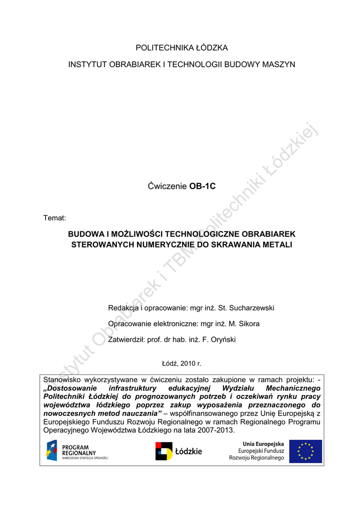 Instrukcja - Instytut Obrabiarek i Technologii Budowy Maszyn