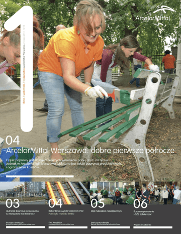 1 firma, 1 społeczność, 1 wydawnictwo ArcelorMittal Warszawa wrzesień 2014, Nr 23 04 ArcelorMittal Warszawa: dobre pierwsze półrocze Część poprawy jest skutkiem lepszych warunków panujących na rynku. Jednak w ArcelorMittal Warszawa widoczna jest także poprawa produktywności i ograniczenie kosztów. 03 Hutnicza brać ma swoje rondo w Warszawie na Bielanach 04 Rekordowe wyniki walcowni P20 Pomogła metoda SMED 05 Stop materiałom niebezpiecznym Grzegorz Stańczyk Ewa Karpińska Dariusz Marchewka [email protected] ewa.karpiń[email protected] [email protected] 06 Rocznica powstania NSZZ Solidarność Wojciech Sadowski 2 informacje globalne 1 ArcelorMittal Warszawa wrzesień 2014 Wyniki za pierwsze półrocze odzwierciedlają wzrost marży na stali Na początku drugiego półrocza 2014 r. pragnę poprosić wszystkich o zastanowienie się nad tym, jaki wkład możecie wnieść w poprawę niezawodności” – prezes Lakshmi Mittal. śmiertelnych. Nadal musimy pracować nad obszarami takimi jak: ulepszanie procesów, instrukcji, 1 sierpnia br. koncern ArcelorMittal szkoleń, dozoru, podnoszenie świaogłosił wyniki za drugi kwartał oraz domości, większa troska o siebie nawzajem i ciągłe zaangażowanie pierwsze półrocze 2014 r. Wyniki finansowe za ten okres odzwiercie- wszystkich osób. Ufam, że w kolejdlają prognozowany wzrost wysyłki nym kwartale wyniki znów będą lepsze: to nasz najważniejszy cel”stali i marży. Korzyści, wynikające dodał. ze zwiększonej wysyłki rudy, zostały ograniczone przez niższe od zakładanych ceny, co spowodowało Zysk netto po raz pierwszy zmianę prognozy dotyczącej zysku od dwóch lat EBITDA za cały rok z ok. 8 mld USD Wyniki finansowe za ten okres do ponad 7 mld USD. odzwierciedlają prognozowany Jeżeli chodzi o bezpieczeństwo, wzrost wysyłki stali i marży, co wskaźnik wypadkowości (LTIFR) poprawił się w stosunku do tego sa- przyczyniło się do poprawy rzemego okresu ubiegłego roku, ale po czywistego wyniku EBITDA o 9%, raz drugi z rzędu uległ pogorszeniu tj. do poziomu 1,8 mld USD. w porównaniu z poprzednim kwar- Dobrym znakiem jest również to, że po raz pierwszy od dwóch lat tałem. „Pogorszenie nawet o 0,01 wzbu- osiągnęliśmy zysk netto. Zadłużedza niepokój, ponieważ oddala nas nie netto spadło do poziomu 17,4 od celu wynoszącego zero. Dobrze mld USD. W liście do pracowników prezes jednak, że trend zaczął się popraMittal zwrócił szczególną uwagę na wiać, a za maj i czerwiec wskaźnik wypadkowości wyniósł 0,76. Mam wyniki dwóch obszarów naszej firmy: nadzieję, że uda nam się utrzymać „W Europie wynik EBITDA popraten pozytywny kierunek. Tragedią wił się o 28,8% w stosunku do pojest to, że w tym roku już dziesięć osób straciło życie w pracy: o cztery przedniego kwartału, osiągając poziom 689 mln USD, co jest zwiąmniej niż w pierwszych siedmiu zane z większym wolumenem wymiesiącach ubiegłego roku, ale to syłek wynikającym z poprawy wciąż o dziesięć za dużo”, napisał prezes Mittal w liście skierowanym koniunktury, jak również z podej1 sierpnia do wszystkich pracowni- mowanymi wysiłkami mającymi na celu optymalizację kosztów w tym ków. „Wytyczne z mojej strony pozos- regionie. W regionie ACIS (Afryka, kraje tają niezmienne: wiemy, jakie są byłego Związku Radzieckiego) przyczyny obrażeń i wypadków Sophie Evans [email protected] > 10,5 mln ton - na wyniki tego kwartału wpływ miały niższe ceny rudy żelaza. Nasza firma zweryfikowała prognozy dotyczące średniej ceny rudy żelaza w 2014 r. do poziomu 105 USD/t w stosunku do Wynik EBITDA w wysokości 1,8 mld USD, co oznacza poprzednich szacunków na poziorzeczywisty wzrost o 9% w stosunku do drugiego mie 120 USD/t . Oczekuje się, że kwartału 2013 r. wynik EBITDA za ten rok przekroczy 7 mld USD. Zysk netto w wysokości 100 mln USD w drugim kwartale „Liczyliśmy się z niższymi cenami 2014 r. w stosunku do straty netto w wysokości 800 mln rudy żelaza i od dłuższego czasu USD w drugim kwartale 2013 r. uwzględnialiśmy ten fakt w naszej strategii, niemniej jednak do gwałWysyłki stali na poziomie 21,5 mln ton, tj. o 2,5% więcej townego spadku cen doszło nieco niż w drugim kwartale 2013 r. wcześniej, niż przewidywaliśmy. Nasza strategia i priorytety pozosWydobycie rudy żelaza na poziomie 16,6 mln ton w stosunku tają jednak niezmienne. Ponadto, do 15 mln ton w drugim kwartale 2013 r. musimy jak najlepiej wykorzystać możliwości związane z poprawą Zadłużenie netto w wysokości 17,4 mld USD na dzień koniunktury w branży stalowej” 30 czerwca, tj. spadek o 1,1 mld USD w ciągu kwartału. powiedział prezes Mittal. Lakshmi Mittal nawiązał do pięciu priorytetów dla całego naszego wynik EBITDA zwiększył się do po- dziewanych cen rudy żelaza. W USA koncernu, które obowiązują każokres trudnych warunków pogodo- dego z nas i stanowią uzupełnienie ziomu 156 mln USD wobec 109 wych już za nami i musimy skupić mln USD w poprzednim kwartale. celów biznesowych, określonych dla Było to skutkiem wzrostu produkcji, się na wykorzystaniu możliwości każdego segmentu. Oto one: wysyłki i sprzedaży w tym regionie. związanych ze wzrostem gospodarczym: ArcelorMittal oczekuje wzrostu • Bezpieczeństwo i higiena pracy, Biorąc pod uwagę to, że poprawa w tym obszarze była podstawowym jawnego zużycia stali o 5-6% w sto- • Realizacja przyjętych biznesplasunku do wcześniejszej prognozy celem na rok 2014, cieszę się, że nów w sposób pozwalający na po3,5-4,5% sporządzonej w okresie udało nam się tego dokonać, choć prawę rentowności naszej firmy, gwałtownego kurczenia się gospo- • Poprawa konkurencyjności, lepsze wyniki zostały częściowo darki. zniwelowane przez słaby wzrost • Zaangażowanie pracowników, Choć wysyłka z kopalń zwiękgospodarczy i planowany remont jed• Relacje z otoczeniem zewnętrznej z podstawowych instalacji w RP