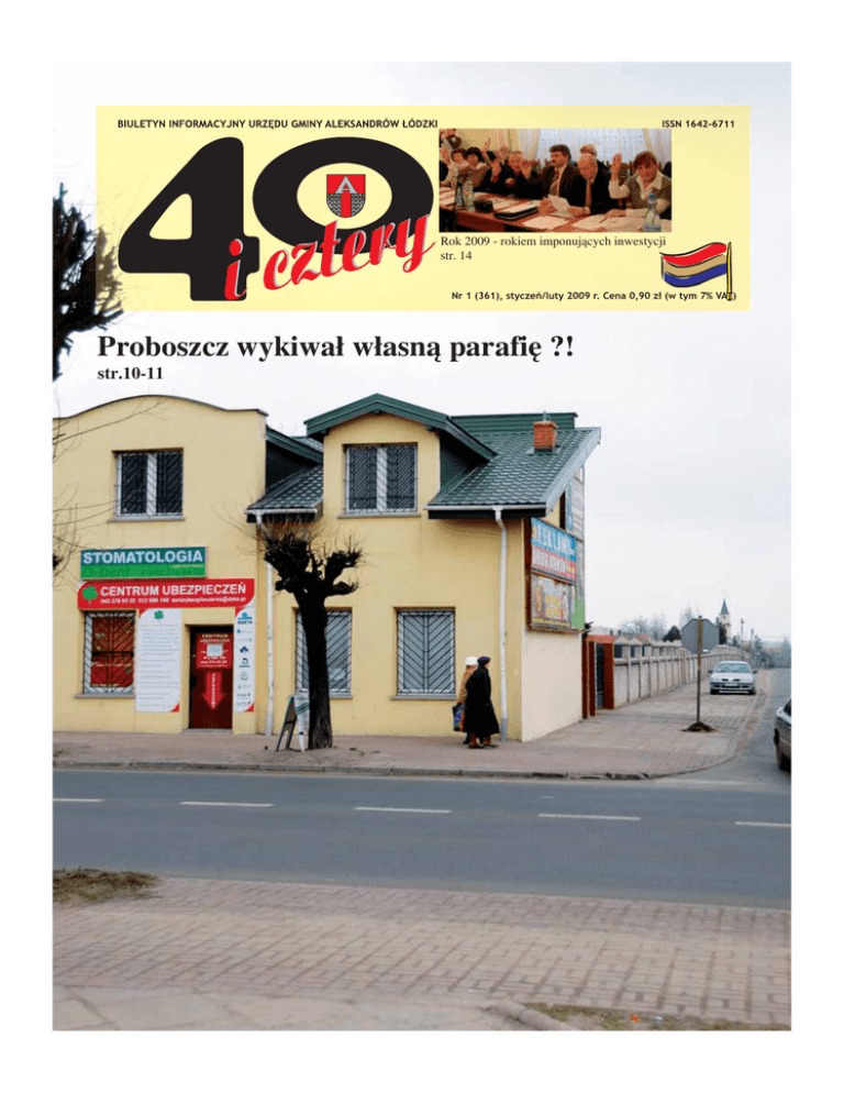 Rok 2009 - rokiem imponujących inwestycji str. 14 Nr 1 (361), styczeń/luty 2009 r. Cena 0,90 zł (w tym 7% VAT) Proboszcz wykiwał własną parafię ?! str.10-11 INWESTYCJE Hala w rok Jedna z najważniejszych tegorocznych inwestycji, hala sportowa przy Zespole Szkół Sportowych, powstanie jeszcze w tym roku, a nie w 2010 jak zakładano. Powód jest prosty — oszczędności jakie z takiego przyspieszenia spodziewa się pozyskać gmina. Według wyliczeń, koszt hali nie powinien przekroczyć 5 mln złotych, choć wstępnie zakładano, że będzie o ponad milion droższy. Nowoczesna hala lekkoatletyczna będzie jedyną taką halą w Polsce, wybudowaną przy szkole. Jej wymiary to 63 x 24 metry, więc możliwe będą treningi lekkoatletyczne. Na hali znajdzie się miejsce na bieżnie, stanowiska do rzutu dyskiem, młotem czy kulą, skoku wzwyż, gry w koszykówkę i siatkówkę. — Szkoła będzie miała znakomite warunki funkcjonowania i trenowania świetnych sportowców — zapewnia Jacek Lipiński, burmistrz gminy. Pomysł wybudowania tak nietypowej hali był pomysłem nauczycieli z Zespołu Szkół Sportowych, którzy wymyślili salę mogącą spełniać warunki W numerze między innymi: do przeprowadzania normalnych lekcji wychowania fizycznego, jak i specjalistycznych treningów lekkoatletycznych. Realizacja inwestycji zacznie się prawdopodobnie wiosną. Do tego czasu uczniowie nadal ćwiczyć będą na korytarzach, bo choć mają salę gimnastyczną i boisko lekkoatletyczne, to dla wszystkich trenujących brakuje miejsca. Każdy uczeń (a jest ich w sumie 400) ma tygodniowo 10 godzin wychowania fizycznego plus 2 godziny treningów w sekcjach. (kbs) 100 tysięcy na 100 metrów Podopieczni Środowiskowego Domu Samopomocy przestaną dusić się w ciasnych pracowniach. Rozpoczął się remont pomieszczeń zwolnionych jesienią przez filię Powiatowego Urzędu Pracy w Aleksandrowie. PUP zrezygnował z całego drugiego piętra budynku przy ul. Piotrkowskiej, gdzie również mieści 2 się ŚDS. Remont mógł się rozpocząć dzięki 100 tys. złotych przekazanym przez Urząd Wojewódzki. Dom samopomocy zyska dzięki temu 100 metrów kwadratowych. W wyremontowanych pomieszczeniach mieścić się będzie pracownia rehabilitacyjna z prawdziwego zdarzenia, sala projekcyjna i konferencyjna, pracownia witrażu, czytelnia oraz łazienka przystosowana dla osób niepełnosprawnych. Obecnie w ŚDS jest 35 pensjonariuszy i liczby tej nie można było zwiększyć z uwagi na brak miejsca. Po remoncie, który zakończyć się ma na początku lutego, środowiskowy dom wnioskować będzie o możliwość przyjęcia dodatkowych 5 osób. (kbs) Podsumowanie roku 2008 str. 4-9 Proboszcz wykiwał własną parafię?! str. 10-11 Konkurs trwa str. 12 Liceum z boiskiem str. 13 Użyteczny bezrobotny str. 13 Zagraliśmy rekordowo str. 14-15 Gospodynie na opłatku str. 16 Jasełkowe warsztaty str. 16 Zauroczeni Japonią str. 17 Rok imponujących inwestycji str. 18 Spotkanie z książką str. 18 Nikt tak nie kocha str. 19 Krzyż zasługi dla burmistrza str. 19 Światełko w ratuszu str. 20 Paczki dla najmłodszych str. 21 „Wyborcza” o Lipińskim str. 21 Czas zatrzymany na scenie str. 22 100 dni przed maturą str. 23 Opłatek u emerytów str. 25 Sylwester 2008/2009 str. 27 Wydarzenia MDK str. 28 Anioł w bibliotece str. 30 Ferie z rakietką str. 34 Druga Otylia? str. 34 Jedynka nie zwalnia... str. 35 TELEFON REPORTERSKI 712 11 24 „40 i cztery”. Biuletyn Informacyjny Urzędu Gminy Aleksandrów Łódzki. Ukazuje się od 1991 r. Adres redakcji: 95-070 Aleksandrów Łódzki, pl. T. Kościuszki 2, parter, pok. 25, tel./faks 042 712 11 24 Gazetę redagują: Dorota Bełdowska-Zemła - red. nacz. tel. 0605 252 849, e-mail: [email protected] Krystyna Buda-Sowa, tel. 0602-370-567, e-mail: [email protected] Tomasz Barszcz, tel. 42 27 00 343, e-mail: [email protected] Wydawca: Urząd Gminy Aleksandrów Łódzki pl. T. Kościuszki 2, 95-070 Aleksandrów Łódzki, tel. 042 712 10 18 Druk: Drukarnia „PRESTO”, ul. Daszyńskiego 81, 95-070 Aleksandrów Łódzki, tel. 042 276 38 72 Redakcja zastrzega sobie prawo do adiustacji tekstów i zmiany tytułów. Materiałów nie zamówionych nie zwracamy. Nie ponosimy odpowiedzialności za treść reklam, komunikatów i ogłoszeń. Zastrzegamy sobie prawo do zmiany terminu edycji ogłoszeń i reklam. 40 i cztery * styczeń/luty 2009 pomnik Odbudujemy Pomnik Tadeusza Kościuszki odzyska dawny wygląd. Na ostatniej sesji Rady Miejskiej w 2008 roku radni zgodzili się na jego odbudowę. Z takim pomysłem wystąpiło Towarzystwo Przyjaciół Aleksandrowa, które przez cały 2009 rok będzie zbierać na ten cel pieniądze. — Nastawiamy się głównie na zbiórki uliczne, które rozpoczniemy, jak tylko otrzymamy zgodę od burmistrza — mówi Leszek Pierlejewski prezes TPA. — Chcemy, by pomnik przywódcy insurekcji odzyskał pierwotny wygląd. Koszt przedsięwzięcia jest niemały, bo ponad 100 tys. zł, ale mam nadzieję, że z pomocą mieszkańców miasta uda się to przedsięwzięcie. Nie ukrywam, że liczymy też na wsparcie finansowe gminy. Stojący w centrum Aleksandrowa pomnik, zbombardowany został 7 września 1939 roku. Przedstawiał całą postać Tadeusza Kościuszki stojącego dumnie na cokole z ręką na głowni szabli. W 1964 roku mieszkańcy ufundowali nowy pomnik, ale dużo skromniejszy, bo na wysokim obelisku postawiono jedynie popiersie Kościuszki. (kbs) Nowe auto dla podopiecznych Nowiutki citroen jumper będzie dowoził podopiecznych z terenu gminy do Środowiskowego Domu Samopomocy w Aleksandrowie Łódzkim. Samochód w całości sfinansował Urząd Wojewódzki, na wniosek aleksandrowskiego OPS. Citroen wyposażony jest w 6 foteli w przedziale pasażerskim plus 2 dodatkowe w kabinie kierowcy. Łącznie poruszać się nim może 9 osób razem z kierowcą. Atutem jest to, że nawet wysoka osoba może w nim swobodnie stanąć, a umieszczenie foteli zaplanowano ta