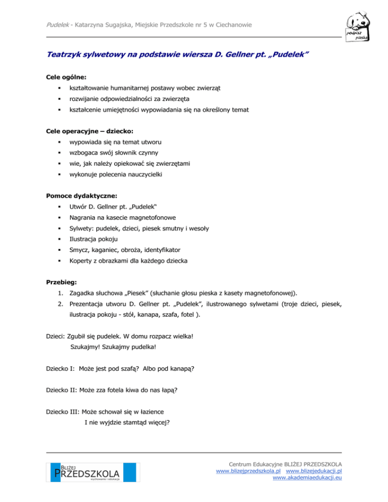 Teatrzyk sylwetowy na podstawie wiersza D. Gellner pt. „Pudelek”