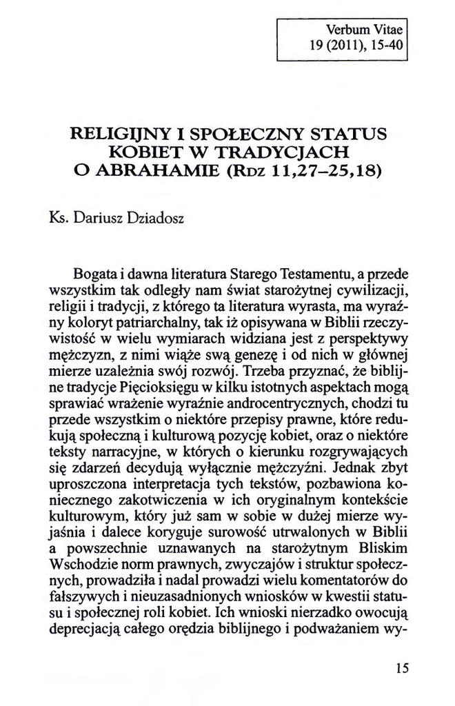 orędzia, jakie tradycje o Abrahamie, a także cała Biblia, komunikują w odniesieniu do kobiet i zajmowanego przez nie