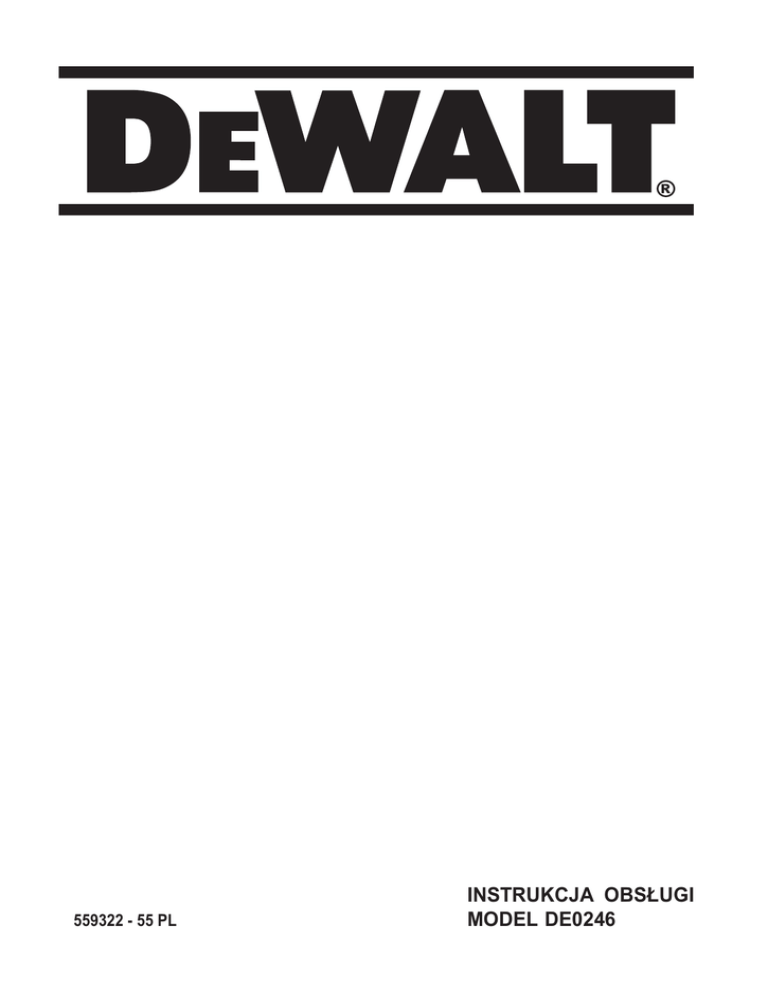 559322 - 55 PL INSTRUKCJA OBSŁUGI MODEL DE0246 2 ŁADOWARKA DE0246 Serdeczne gratulacje! Bezpieczeństwo elektryczne Zdecydowałeś się na zakup młotowiertarki firmy DEWALT, która zgodnie ze swoją długoletnią tradycją oferuje tylko innowacyjne i wypróbowane w licznych testach, wysokiej jakości produkty dla specjalistów. Wiele lat doświadczeń i ciągły rozwój sprawiły, że firma DEWALT stała się prawdziwie niezawodnym partnerem dla wszystkich użytkowników profesjonalnych narzędzi. Sprawdź, czy lokalne napięcie sieciowe odpowiada wartości podanej na tabliczce znamionowej ładowarki. Ładowarka DEWALT zgodnie z normą EN 60335 jest podwójnie zaizolowana i dlatego żyła uziemiająca nie jest potrzebna. Wymiana kabla sieciowego lub wtyczki Uszkodzony kabel sieciowy lub wtyczka mogą być wymienione tylko przez autoryzowany specjalistyczny zakład. Wymieniony kabel sieciowy lub wtyczkę należy następnie fachowo zlikwidować jako odpad zgodnie z przepisami o ochronie środowiska. Dane techniczne Napięcie sieciowe (V) Napięcie akumulatora (V) Prąd ładowania: na wejściu (A) na wyjściu (A) Czas ładowania (w przybliżeniu) (h) Ciężar (kG) Minimalne natężenie prądu bezpiecznika: zasilana napięciem 230 V 10 A DE0246 230 24 2,5 2,8 Przedłużacz Używaj przedłużacza, który został dopuszczony do eksploatacji i wytrzymuje pobór mocy przez ładowarkę (patrz: dane techniczne). Jego minimalny przekrój powinien wynosić 0,5 mm2 . Zawsze całkowicie odwijaj kabel z bębna. 1 0,5 Ładowarka Instrukcja obsługi W instrukcji tej zastosowano następujące symbole: Zawsze przestrzegaj wskazówek bezpieczeństwa i obowiązujących przepisów. Uwaga: Wskutek nieprzestrzegania tej wskazówki narażasz się na doznanie obrażeń ciała, utratę życia lub uszkodzenie narzędzia! Ładowanie akumulatora (rysunek A) Przed rozpoczęciem ładowania akumulatora sprawdź zasilanie ładowarki. Gdy jest ona prawidłowo zasilana, a akumulator pomimo to nie ładuje się, oddaj ładowarkę do warsztatu serwisowego DEWALT w celu przeglądu. Podczas ładowania akumulator i ładowarka mogą się nagrzewać, ale jest to zjawisko normalne i nie świadczy o jakiejś usterce. Napięcie elektryczne Niebezpieczeństwo pożaru Kontrola zakresu dostawy Nie ładuj akumulatora w temperaturze otoczenia poniżej 4 oC lub powyżej 40 oC. Zalecana temperatura ładowania wynosi około 24oC. Opakowanie zawiera następujące elementy: 1 ładowarka 1 instrukcja obsługi • Przed uruchomieniem dokładnie przeczytaj instrukcję obsługi. • Opis urządzenia (rysunek A) Ładowarka DE0246 służy do ładowania akumulatorów hybrydowych niklowo-metalowych i niklowo-kadmowych DEWALT. 1 Ładowarka 2 Lampka kontrolna ładowania (czerwona) 3 Akumulator 4 Przycisk trybu ładowania konserwacyjnego 3 By naładować akumulator (3), zgodnie z rysunkiem umieść go w ładowarce (1) i przyłącz ładowarkę do sieci. Upewnij się, czy akumulator został prawidłowo włożony do ładowarki. Musi migać czerwona lampka kontrolna ładowania (2). Zależnie od pojemności akumulatora (Ah) lampka przestaje migać po około 1 godzinie i zaczyna się świecić na stałe. Świadczy to o całkowitym naładowaniu akumulatora, po czym ładowarka przechodzi do trybu ładowania wyrównawczego. Po około 2 - 4 godzinach ładowarka przełącza się na tryb ładowania konserwacyjnego. • • Akumulator można w każdej chwili wyjąć lub pozostawić w przyłączonej ładowarce na nieograniczony okres czasu. Gdy czerwona lampka kontrolna ładowania szybko miga, to znaczy że występuje jakaś usterka. Jeszcze raz włóż akumulator lub na próbę zastosuj inny. Gdy także nowy akumulator nie jest ładowany, oddaj ładowarkę do warsztatu serwisowego firmy DEWALT. Gdy ładowarka jest przyłączona do takich źródeł napięcia przemiennego, jak agregat prądotwórczy lub falownik, może się zdarzyć, że lampka kontrolna ładowania (2) dwukrotnie mignie, a następnie zgaśnie, i cykl ten będzie się powtarzać. Świadczy to o przejściowym zakłóceniu napięcia zasilania. Po ustabilizowaniu się napięcia ładowarka ponownie automatycznie przechodzi do normalnego trybu pracy. akumulatora. Po ochłodzeniu ładowarka znów się samoczynnie włącza. W ten sposób osiąga się maksymalną trwałość akumulatora. W czasie wyłączenia celem ochłodzenia czerwona lampka kontrolna ładowania (2) miga najpierw powoli, a następnie szybko. Konserwacja Ładowarka firmy DEWALT odznacza się dużą trwałością i prawie nie wymaga konserwacji. Jednak warunkiem ciągłej, bezawaryjnej pracy jest regularne czyszczenie. Czyszczenie • • Ładowanie konserwacyjne • • • • Obudowę ładowarki przecieraj miękką ściereczką. Dbaj o to, by szczeliny wentylacyjne zawsze były odsłonięte i regularnie przecieraj obudowę miękką ściereczką. Ochrona środowiska Ładowanie konserwacyjne przyczynia się do długofalowego utrzymania maksymalnej sprawności akumulatora. Zaleca się przeprowadzać je raz na tydzień lub co 10 cykli ładowania/rozładowania. Bezwzględnie jest ono konieczne w razie stwierdzenia spadku wydajności akumulatora. Rozpocznij ładowanie zgodnie z powyższym opisem. Naciśnij przycisk (4). Lampka kontrolna ładowania na chwilę gaśnie, trzy razy szybko miga i ostatecznie miga nadal w swoim normalnym rytmie. Ładowarka pracuje teraz w trybie ładowania konserwacyjnego. Po upływie najwyżej 8 godzin czerwona lampka kontrolna ładowania przestaje migać i zaświeca się na stałe. Akumulator jest teraz całkowicie naładowany i można go w każdej chwili wyjąć lub pozostawić w przyłączonej ładowarce na nieograniczony okres czasu. By zakończyć ładowanie konserwacyjne, akumulator można w każdej chwili wyjąć i znów włożyć do ładowarki. Selektywna zbiórka odpadów. Produktu tego nie wolno wyrzucać do normalnych śmieci z gospodarstw domowych. Gdy pewnego dnia będziesz zmuszony zastąpić produkt D 