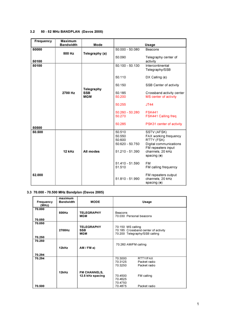3.3 70.000 - 70.500 MHz Bandplan (Davos 2005)