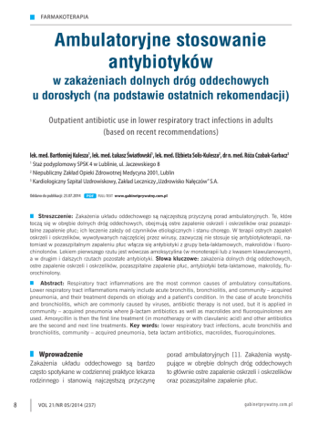 Streszczenie: Zakażenia układu oddechowego są najczęstszą przyczyną porad ambulatoryjnych. Te, które