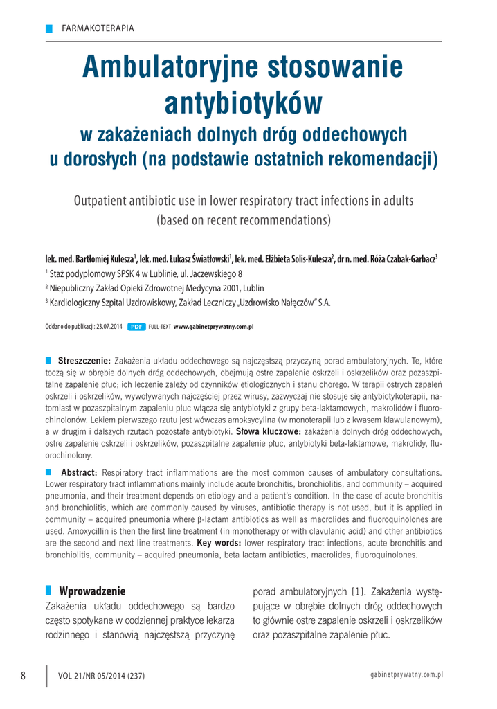 ostre zapalenie oskrzeli i oskrzelików, pozaszpitalne zapalenie płuc, antybiotyki beta-laktamowe, makrolidy, fluorochinolony.