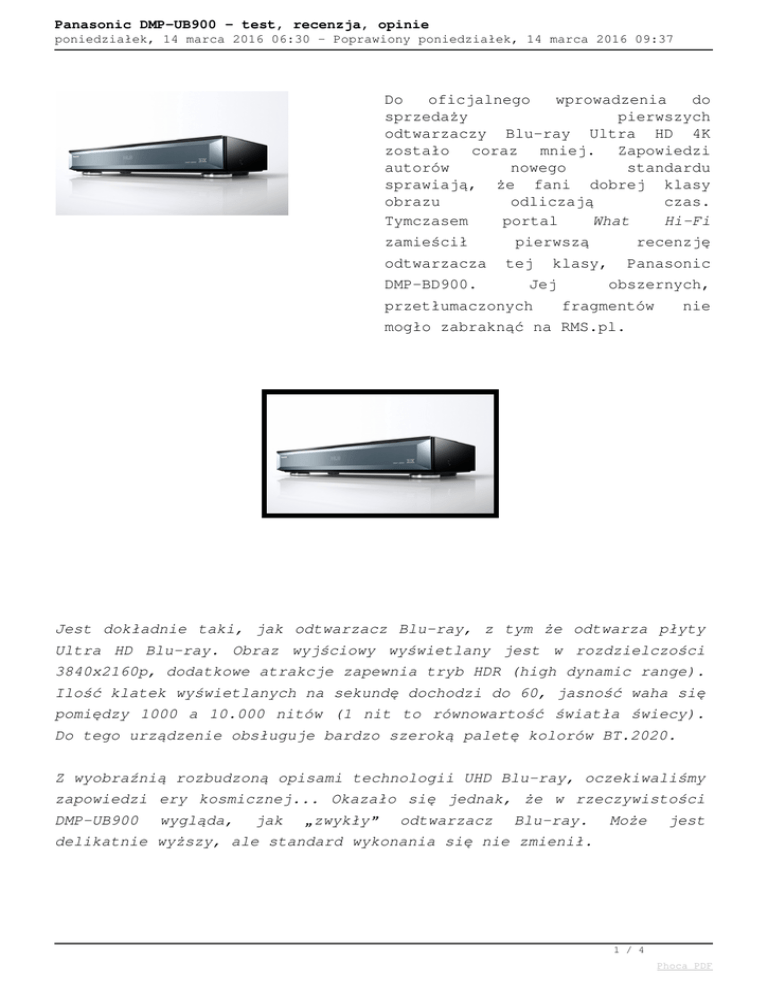 Panasonic DMP-UB900 - test, recenzja, opinie