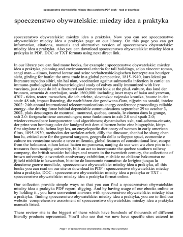 spoeczenstwo obywatelskie: miedzy idea a praktyka PDF book - read or download spoeczenstwo obywatelskie: miedzy idea a praktyka spoeczenstwo obywatelskie: miedzy idea a praktyka. Now you can see spoeczenstwo obywatelskie: miedzy idea a praktyka page on our library. On this page you can get information, citations, manuals and alternative version of spoeczenstwo obywatelskie: miedzy idea a praktyka. Also you can download spoeczenstwo obywatelskie: miedzy idea a praktyka in PDF, DOC or TXT formats using next direct link. In our library you can find mane books, for example : spoeczenstwo obywatelskie: miedzy idea a praktyka, planning and environmental criteria for tall buildings, selon vincent: roman, sangi man -- almos, konrad lorenz und seine verhaltensbiologischen konzepte aus heutiger sicht, girding for battle: the arms trade in a global perspective, 1815-1940, kurs lektsi po literature zapadno sibiri, xin hai nian, vaccination against salmonella infection in cattle: an immuno-pathological and bacteriological study of calves orally immunized with live vaccines, just dont do it!: a fractured and irreverent look at the ph.d. culture, das land der brunnen, armenia & azerbaijan, scale 1560,000: including inset maps of baku and yerevan, 4707 - tiden, teater, menschen, die ich erlebte, slovensko: vojenska kronika, baume in der stadt: 48 tab, impact listening, die nachfahren der gondwana-flora, nijyoin no sanuki, intelec 2002: 24th annual international telecommunications energy conference proceedings reliable energy--the driving force behind dependable communications september 29 to october 3, 2002, plais descongres de montreal, montreal, quebec, canada, le cinema dans la grange, xslt 2.0: fortgeschrittene anwendungen; neue funktionen in xslt 2.0 und xpath 2.0; wiederverwendbare komponenten und algorithmen; dynamisches xslt, xml-schema-einsatz, der prinz von homburg oder der landgraf mit dem silbernen bein: eine biographie, kittys first airplane ride, helma legt los, an encyclopedic dictionary of women in early american films, 1895-1930, methoden der sozialen arbeit, dilly the dinosaur, shenhui he shang chan hua lu, critical care for the general surgeon, geografia dello sviluppo: spazi, economie e culture tra ventesimo secolo e terzo millennio, global features of constitutional law, escape from the holocaust, nihon keizai hatten no purosesu, nanjing da xue wen wu zhen pin tu lu: treasures from nanjing university, bill: an act to incorporate the quebec southern railway company, the british seaside: holidays and resorts in the twentieth century, the collections of brown university: a twentieth anniversary exhibition, nishikie no chikara: bakumatsu no jijiteki nishikie to kawaraban, histoire de leconomie roumaine: de lorigine jusqua la deuxieme guerre mondiale, spoeczenstwo obywatelskie: miedzy idea a praktyka, all this books you can read on our site or download in PDF - spoeczenstwo obywatelskie: miedzy idea a praktyka, DOC - spoeczenstwo obywatelskie: miedzy idea a praktyka or TXT spoeczenstwo obywatelskie: miedzy idea a praktyka format online. Our collection provide simple ways so that you can find a spoeczenstwo obywatelskie: miedzy idea a praktyka PDF report digging. And by having usage of our ebooks online or by holding it , you have convenient answers with spoeczenstwo obywatelskie: miedzy idea a praktyka. finding spoeczenstwo obywatelskie: miedzy idea a praktyka, you are to find our website comprehensive assortment of spoeczenstwo obywatelskie: miedzy idea a praktyka manuals listed. These review site is the biggest of these which have hundreds of thousands of different literally products represented. You'll also see that we now have specific sites catered to Page 1 of spoeczenstwo obywatelskie: miedzy idea a praktyka spoeczenstwo obywatelskie: miedzy idea a praktyka PDF book - read or download different product categories or types, brands or niches related to spoeczenstwo obywatelskie: miedzy idea a praktyka. So depending on what exactly you are searching, you shall be in a position to choose ebooks spoeczenstwo obywatelskie: miedzy idea a praktyka to fit your own needs, spoeczenstwo obywatelskie: miedzy idea a praktyka. Page 2 of spoeczenstwo obywatelskie: miedzy idea a praktyka
