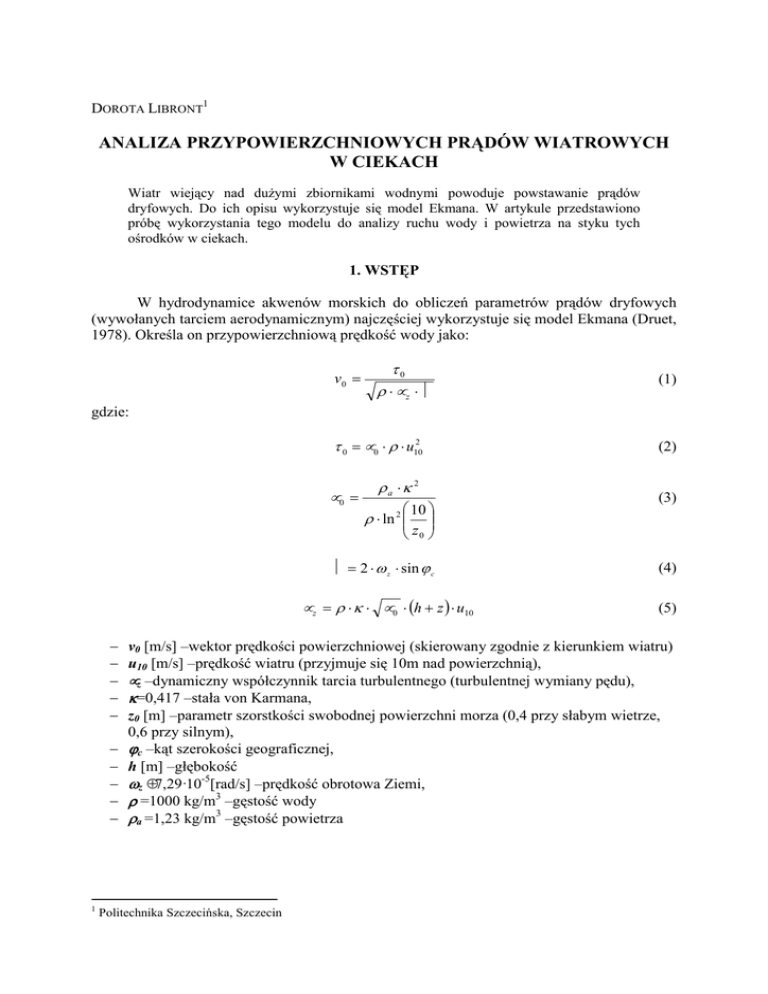 analiza przypowierzchniowych prądów wiatrowych w ciekach