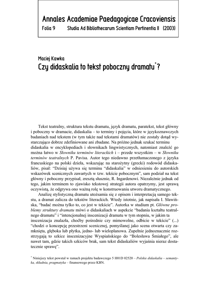 Annales Academiae Paedagogicae Cracoviensis Czy didaskalia to