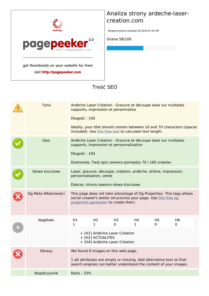 Analiza strony ardeche-laser