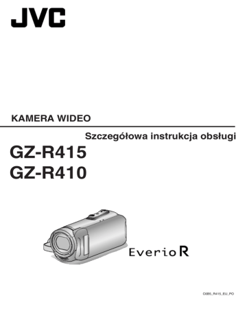 KAMERA WIDEO Szczegółowa instrukcja obsługi GZ-R415 GZ-R410 C6B5_R415_EU_PO Spis treści Skrócony przewodnik Sprawdzanie wyposażenia ...................................................... 3 Włączanie urządzenia ............................................................. 4 Otwieranie osłony styków (pokrywy karty SD) ......................... 4 Ładowanie ............................................................................... 5 Resetowanie urządzenia ......................................................... 5 Poczwórna odporność ............................................................. 6 Przed użyciem pod wodą lub w warunkach niskiej temperatury .......................................................................................... 6 Regulacja uchwytu .................................................................. 8 Mocowania filtra przeciwzakłóceniowego ................................ 8 Wkładanie karty SD ................................................................. 9 Rodzaje możliwych do zastosowania kart SD ...................... 9 Używanie ekranu dotykowego ............................................... 10 Blokowanie ekranu (podczas fotografowania pod wodą) ... 10 Dostosowywanie ekranu dotykowego ................................ 11 Nazwy przycisków na monitorze LCD i ich funkcje ............. 12 Ustawianie zegara ................................................................. 15 Ponowne ustawianie zegara .............................................. 15 Zmiana języka wyświetlania na ekranie ................................. 16 Trzymanie tego urządzenia .................................................... 17 Mocowanie statywu ............................................................... 17 Używanie urządzenia za granicą ........................................... 18 Ładowanie akumulatora za granicą .................................... 18 Ustawienie zegara na czas lokalny podczas podróży ........ 18 Ustawienie czasu letniego .................................................. 19 Wyposażenie opcjonalne ....................................................... 19 Nagrywanie Nagrywanie filmu w trybie automatycznym ............................ 20 Rejestrowanie zdjęć podczas nagrywania filmu ................. 23 Wykonywanie zdjęć w trybie automatycznym ........................ 23 Praca z zoomem .................................................................... 26 Nagrywanie w trybie ręcznym ................................................ 27 Ręczna regulacja ostrości (OSTROŚĆ) ............................. 28 Regulacja jasności ............................................................. 29 Ustawienie kompensacji oświetlenia tylnego ..................... 30 Ustawienie balansu bieli ..................................................... 31 Wykonywanie zbliżeń (TELE MAKRO) .............................. 32 Nagrywanie pod wodą ........................................................... 33 Nagrywanie z efektami (EFEKT NAGRYWANIA) .................. 34 Rejestrowanie zdjęć wyglądających jak stare czarno-białe zdjęcia (ZIARNISTA MONOCHR.) ................................. 35 Rejestrowanie obrazów przedstawiających żywność (ŻYWNOŚĆ) .................................................................. 36 Rejestrowanie obrazów przedstawiających niemowlę (DZIECKO) ..................................................................... 37 Robienie wyraźnych zdjęć ludzi (PIERW. DOTYK. AE/AF) .... 38 Zmniejszanie drgań kamery ................................................... 39 Nagrywanie w odstępach czasu (NAGRYWANIE POKLATKOWE) ................................................................. 40 Korzystanie z samowyzwalacza ............................................ 42 Nagrywanie w stałych odstępach i odtwarzanie wielokrotne . 44 Nagrywanie filmów z datą i godziną ....................................... 45 Nagrywanie filmów z licznikiem czasu ................................... 46 Sprawdzanie pozostałego czasu nagrywania ........................ 47 Odtwarzanie Odtwarzanie filmów ............................................................... 49 Normalne odtwarzanie ....................................................... 49 Sprawdzanie daty nagrania i innych informacji .................. 52 ODTW. Z LICZN. CZASU .................................................. 53 ODTWARZ. SUMARYCZNE .............................................. 54 ODTW. INNEGO PLIKU ..................................................... 55 Odtwarzanie zdjęć ................................................................. 56 Odtwarzanie pokazu slajdów ............................................. 58 Podłączanie i oglądanie na ekranie telewizora ...................... 58 Podłączanie przez minizłącze HDMI .................................. 59 2 Łączenie przez złącze AV .................................................. 60 Edycja Usuwanie niechcianych plików .............................................. 62 Usuwanie aktualnie wyświetlanego pliku ........................... 62 Usuwanie wybranych plików .............................................. 62 Ochrona plików ...................................................................... 63 Włączanie/Wyłączanie ochrony aktualnie wyświetlanego pliku ................................................................................ 63 Włączenie/Wyłączanie ochrony wybranych plików ............ 64 Robienie zdjęcia z odtwarzanego filmu .................................. 65 Rejestracja wybranej części z nagranego filmu (PRZYCINANIE) ............................................................................................ 66 Kopiowanie Kopiowanie plików na dysk po podłączeniu do nagrywarki Bluray ...................................................................................... 67 Kopiowanie do komputera z systemem Windows .................. 68 Sprawdzanie 