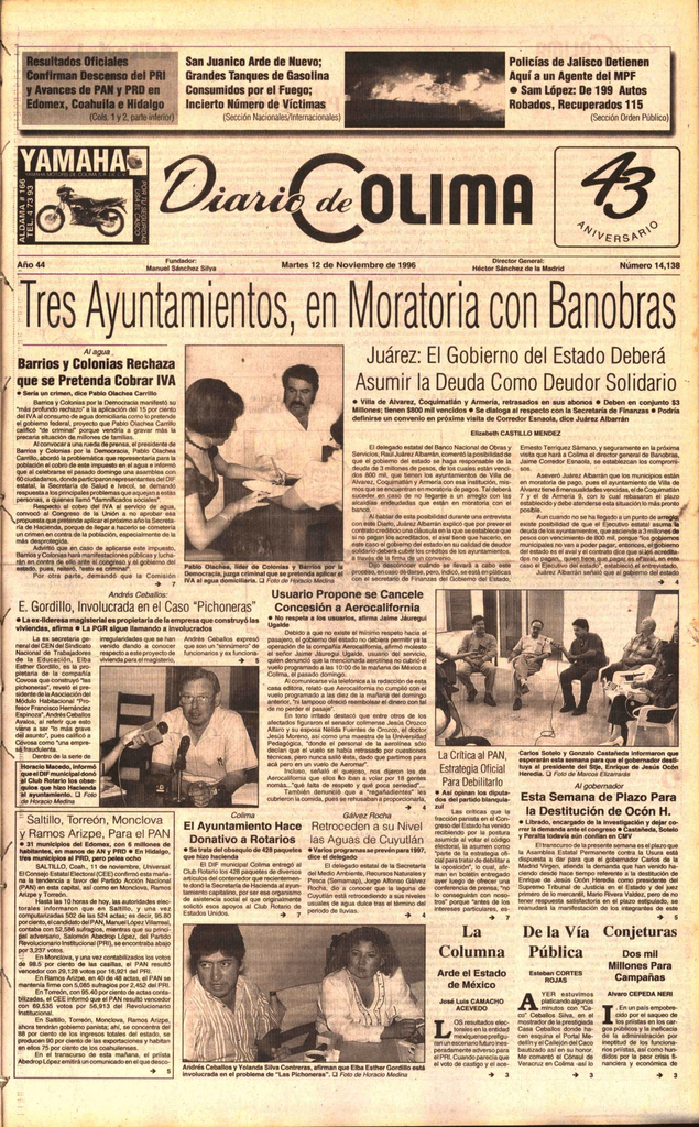 Alvarez, Coquimatlán y Armería con esa institución, mis mos que se encuentran en moratoria de pagos . Tal deberá