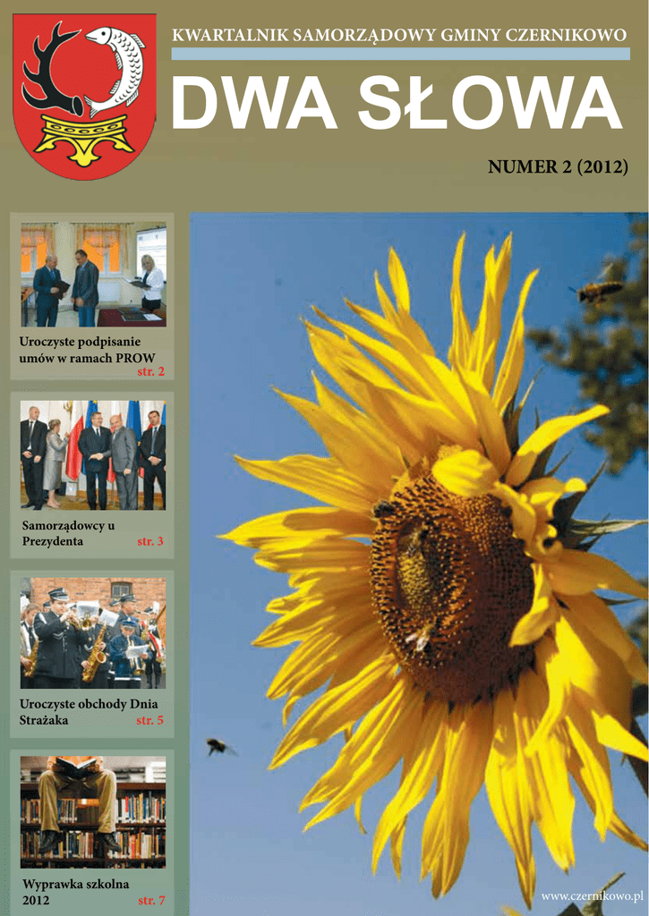 KWARTALNIK SAMORZĄDOWY GMINY CZERNIKOWO DWA SŁOWA NUMER 2 (2012) Uroczyste podpisanie umów w ramach PROW str. 2 Samorządowcy u Prezydenta str. 3 Uroczyste obchody Dnia Strażaka str. 5 Wyprawka szkolna 2012 str. 7 www.czernikowo.pl 2 KWARTALNIK SAMORZĄDOWY GMINY CZERNIKOWO Uroczyste podpisanie umów w ramach PROW w Mazowszu Wójtowie, Burmistrzowie i Skarbnicy dziewięciu gmin województwa kujawsko-pomorskiego odwiedzili Wiejski Dom Kultury w Mazowszu. Wszystko za sprawą uroczystego podpisania umów na tworzenie systemu zbiórki, segregacji lub wywozu odpadów komunalnych oraz wytwarzanie lub dystrybucję energii ze źródeł odnawialnych w ramach Programu Rozwoju Obszarów Wiejskich na lata 2007-2013. Urząd Gminy Czernikowo ul. Słowackiego 12 www.czernikowo.pl Województwo: kujawsko-pomorskie Powiat: toruński Wójt: Zdzisław Gawroński Powierzchnia: 169,37 km2 Liczba sołectw: 17 KWARTALNIK SAMORZĄDOWY GMINY CZERNIKOWO Nakład 2000 egz. Wydawca:Urząd Gminy Czernikowo ul. Słowackiego 12, Czernikowo e-mail: [email protected] Prosimy o przesyłnie swoich uwag i propozycji na powyższy adres. Przemysław Pujer (redaktor naczelny) Zdjęcia są własnością Urzędu Gminy Czernikowo Projekt graficzny i skład Agencja PR GOLDENDORF e-mail: [email protected] Wśród beneficjentów znaleźli się oczywiście gospodarze – Wójt Gminy Czernikowo Zdzisław Gawroński oraz Skarbnik Gminy Hanna Koperska. Podpisane w mazowieckiej świetlicy (której budowa również została dofinansowana w ramach PROW) umowy są pierwszymi w ramach ogłoszonego w 2012 r. naboru wniosków działania 321 „Podstawowe usługi dla gospodarki i ludności wiejskiej”. Łączna kwota wsparcia dla zakwalifikowanych jednostek to 2.436.807 złotych, z czego gmina Czernikowo na realizację projektu „Budowa oświetlenia hybrydowego w ramach przebudowy dróg na terenie Gminy Czernikowo” otrzymała 538 865 zł. W uroczystości wziął udział wiceprzewodniczący Sejmiku Województwa Kujawsko-Pomorskiego Ryszard Bober. W tym numerze Uroczyste podpisanie umów w ramach PROW w Mazowszu..........................................2 Uroczyste podpisanie umowy na kolejną „schetynówkę”..................................................................3 Samorządowcy u prezydenta.................................................................................................................3 Wnioski w toku - aktywni w PROW.....................................................................................................4 Przeciwdziałanie wykluczeniu cyfrowemu..........................................................................................4 Wacław Hinc ze Złotym Znakiem Związku OSP RP..........................................................................4 Przez aktywność do integracji w gminie Czernikowo ......................................................................5 Uroczyste obchody Dnia Strażaka 2012..............................................................................................5 Czernikowskie druhny z nowym umundurowaniem........................................................................6 Wyprawka szkolna 2012........................................................................................................................6 W sołectwie jak w totolotku..................................................................................................................7 Liczy się osobowość pracownika socjalnego.......................................................................................7 Tak trzeba ................................................................................................................................................8 Kalendarzowa wiosna to w szkołach czas egzaminacyjny.................................................................8 Konkursy i olimpiada..............................................................................................................................8 Z życia Gminnej Bbiblioteki Publicznej...............................................................................................9 Mistrzostwo województwa obronione..................................................................................................9 Konferencja - nie ma dzieci są ludzie...................................................................................................9 Zewsząd jest widok na cztery strony świata.......................................................................................10 Kolorowe boiska w Makowiskach.......................................................................................................10 Kolejny finał Ogólnopolskiego Konkursu Odysei Umysłu z udziałem czernikowskich uczniów.11 Teatr 4-5-6 z sukcesami występował na scenach w Lipnie i Bydgoszczy...........................................11 Konkursy i uroczystości w Mazowszu....................................................................................................12 Podsumowanie Gminnego Konkursu Języka Angielskiego w Mazowszu........................................13 ABC SP Steklin ........................................................................................................................................14 OSP Witowąż znów z pucharem.............................................................................................................15 Siatkarze Setbola Czernikowo najlepsi w lidze......................................................................................16 Z Gronowa z czterema pucharami..........................................................................................................16 Finał Grand Prix w szachy i warcaby - Puchary Wójta Gminy wręczone.........................................17 Nowoczesny sprzęt dba o czystość gminy..............................................................................................17 Ligowe zmagania baseballistów z Ma
