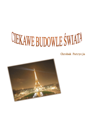 2|Strona Spis treści NAJCIEKAWSZE BUDYNKI ŚWIATA Atomium, Bruksela, Belgia .................................... 7 Muzeum Guggenheima, Bilbao, Hiszpania .............................................................. 8 Fuji TV, Tokio, Japonia .............................................................................................. 9 Torre Agbar, Barcelona, Hiszpania ......................................................................... 10 Teatr Narodowy w Pekinie, Chiny .......................................................................... 11 30 St Mary Axe, Londyn, Wielka Brytania .............................................................. 12 EMP Museum (Experience Music Project), Seattle, USA ....................................... 13 Marina Bay Sands, Singapur ................................................................................... 14 CCTV Television, Pekin, Chiny ................................................................................ 15 Burdż al-Arab, Dubaj, Zjednoczone Emiraty Arabskie ........................................... 16 NAJCIEKAWSZE BUDYNKI POLSKI ............................................................................... 17 Pająk - wieża widokowa w Gorzowie Wielkopolskim ............................................ 17 Toruńska szafa - Teatr Lalek Baj Pomorski w Toruniu ........................................... 18 Pierwszy taki dom handlowy - Solpol Wrocław ..................................................... 19 Wieże Babel - Siedziba TVP w Warszawie .............................................................. 20 Krzywy Domek w Sopocie ...................................................................................... 21 Przewrócony dom w Szymbarku ............................................................................ 22 Ziemianka pod Bełchatowem ................................................................................. 23 Blob obok dworca - Złote Tarasy w Warszawie ..................................................... 24 Dekonstruktywizm po polsku - dom w Żeleźnikowej pod Nowym Sączem ........... 25 Zamek Przemysła w Poznaniu ................................................................................ 26 PRZYSZŁOŚĆ ARCHITEKTURY ...................................................................................... 27 World Architecture Festival ................................................................................... 27 Spis treści 3|Strona Sztuka Architektury ................................................................................................ 30 GUIDE TO THE MOST BEAUTIFUL BUILDINGS IN THE WORLD ................................... 31 PLACES WORTH SEEING FOR YOUSELF…................................................................ 31 Petronas Towers .................................................................................................... 32 The White House .................................................................................................... 33 St Basil's church in front of the Kremlin................................................................. 34 Eiffla Tower ............................................................................................................ 35 Leaning Tower Of Piza ............................................................................................ 36 Empire State Building ............................................................................................. 37 Burj Khalifa ............................................................................................................. 38 Colosseum .............................................................................................................. 39 Sydney Opera House .............................................................................................. 40 Buckingham Palace ................................................................................................ 41 Flatrion Building ..................................................................................................... 42 Taj Mahal ................................................................................................................ 43 Saint Peter's Basilica............................................................................................... 44 Great Sphinx of Giza ............................................................................................... 45 Liberty Tower ......................................................................................................... 46 SPIS INDEKSÓW .......................................................................................................... 47 ŁĄCZA ......................................................................................................................... 49 NAJCIEKAWSZE BUDYNKI ŚWIATA ..................................................................... 49 NAJCIEKWSZE BUDYNKI POLSKI ......................................................................... 49 PRZYSZŁOŚĆ ARCHITEKTURY ............................................................................. 49 GUIDE TO THE MOST BEAUTIFUL BUILDINGS IN THE WORLD ....................... 49 Spis treści 4|Strona Spis ilustracji Rysunek 1 - Atomium ................................................................................................... 7 Rysunek 2 - Muzeum Guggenheima ............................................................................ 8 Rysunek 3 - Fuji TV ....................................................................................................... 9 Rysunek 4 - Torre Agbar ............................................................................................ 10 Rysunek 5 - Teatr Narodowy w Pekinie ..................................................................... 11 Rysunek 6 - 30 St Mary Axe ....................................................................................
