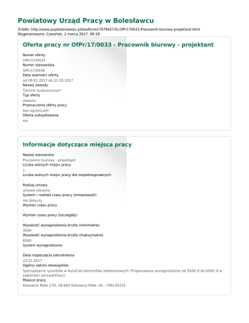 Oferta pracy nr OfPr/17/0033 - Pracownik biurowy