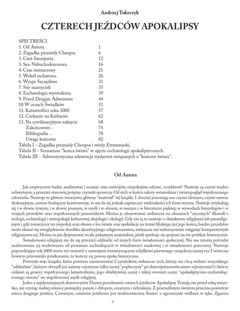 Tabela II - Scenariusz "końca świata" w ujęciu eschatologii apokaliptycznych.