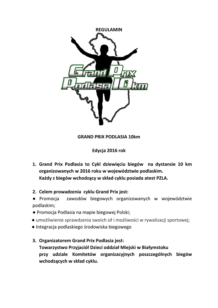 REGULAMIN GRAND PRIX PODLASIA 10km Edycja 2016 rok 1