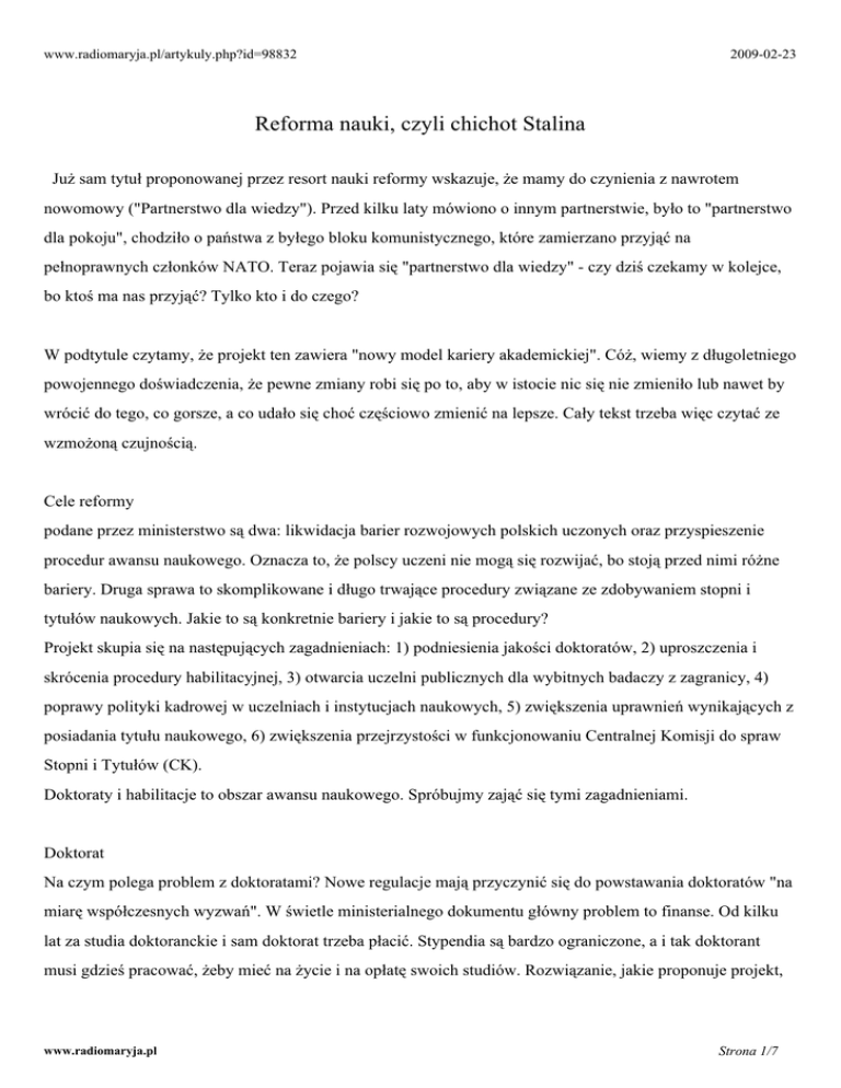 Reforma nauki, czyli chichot Stalina