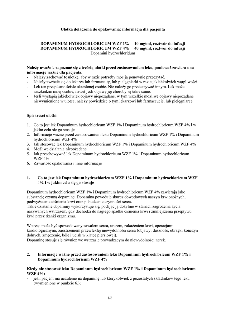 Co to jest lek Dopaminum hydrochloricum WZF 1% i Dopaminum hydrochloricum WZF