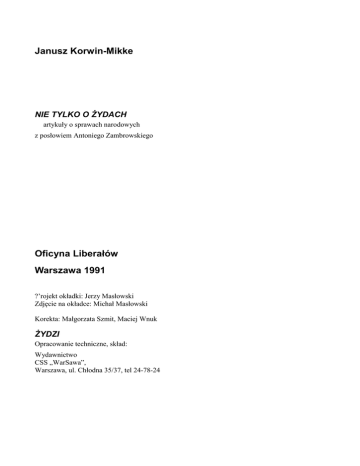 dziesięciokrotnie wyższy od ceny płaconej oficjal-nie. Jeśli Mościskier wywłaszczy Goldbauma narazi się na zarzut skrzywdzenia rodaka; jeśli wywłaszczy Kowalskiego-pojawi się antysemityzm.