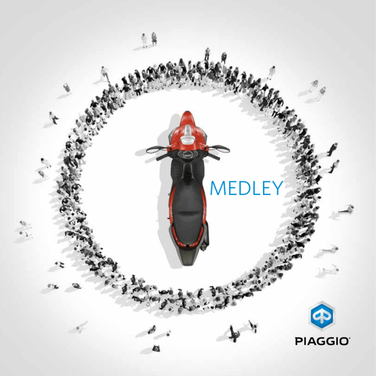 MEDLEY Koniec z monotonią! NIECH CODZIENNA PRZEJAŻDŻKA BĘDZIE NAJLEPSZĄ CZĘŚCIĄ TWOJEGO DNIA Zmieniajmy mobilność, łącząc technologię ze sztuką, a dobre pomysły z dobrym designem. Pokażmy światu, że funkcjonalność może być zabawna, a praktyczność może być piękna. Niech każde naciśnięcie przycisku “Start” przemieni poniedziałkowe poranki, dojazdy do szkoły, korki uliczne i nagłe zlecenia typu “kup chleb po drodze” w ekscytujące przygody. Niech każda zwykła przejażdżka stanie się przyjemnością, a każda podróż najlepszą częścią dnia. TECHNOLOGIA I STYL Medley daje Ci przywilej zupełnie nowego podejścia do podróżowania - oto doskonałe rozwiązanie transportowe łączące elegancję z technologią oraz szybkość z bezpieczeństwem. Dzięki swojej lekkości, zwrotności i kompaktowym rozmiarom Medley zapewnia niezapominane wrażenia z jazdy. Medley stanowi esencję stylistyki marki Piaggio. Praktyczny i dopracowany projekt konstrukcji cechuje się efektownym przodem oraz smukłym tyłem. Wyrafinowane połączenie satynowych i chromowanych elementów podkreślają charakterystyczne detale: środkowy reflektor z chromowanym obramowaniem, światła LED do jazdy dziennej o samochodowym charakterze, unikalna stylistyka obręczy kół z sześcioramiennym motywem dzielonych szprych. Wybierz wersję najlepiej dopasowaną do Twojej osobowości: Medley - elegancki i wyrafinowany skuter z metalicznym lakierem i matowym wykończeniem elementów aluminiowych lub Medley S - sportowy i dynamiczny skuter z czarnymi, matowymi osłonami i agresywnymi detalami. KOLOR SIEDZISKA DOPASOWANY DO WYKOŃCZEŃ KOLUMNY KIEROWNICY ŚWIATŁA LED DO JAZDY DZIENNEJ TYLNE ŚWIATŁA LED ELEKTRONICZNE INSTRUMENTY KONTROLNE I KOMPUTER POKŁADOWY PLATFORMA MULTIMEDIALNA PIAGGIO (AKCESORIUM) WTYCZKA USB DO ŁADOWANIA TELEFONU WLEW PALIWA W CENTRALNEJ CZĘŚCI KORPUSU KANAPA Z UCHWYTEM DLA PASAŻERA ROZKŁADANE PODNÓŻKI DLA PASAŻERA DUŻA POJEMNOŚĆ Medley zapewnia najwyższy poziom komfortu i funkcjonalności. Kompaktowe wymiary połączone z genialnym zarządzaniem przestrzenią - to jedyny w swojej kategorii model ze schowkiem mieszczącym pod siedziskiem 2 pełnowymiarowe kaski integralne. Duża, komfortowa kanapa z zamkiem elektrycznym. Najwyższy komfort również dla pasażera, dzięki rozkładanym podnóżkom i uchwytom przy siedzisku. Umiejscowienie wlewu paliwa w środkowej części korpusu umożliwia tankowanie bez schodzenia z pojazdu. Technologia na pokładzie: instrumenty kontrolne z cyfrowym wyświetlaczem, wtyczka USB i system PMP (Piaggio Multimedia Platform, akcesorium) z możliwością podłączenia smartfona, dla dodatkowego usprawnienia codziennej mobilności. ZAAWANSOWANA TECHNOLOGIA Bezpieczeństwo jest w modelu Medley priorytetem. 16-calowe koło przednie i 2-tarczowy układ hamulcowy z 2-kanałowym systemem ABS w standardzie zapewniają stabilną jazdę i optymalne panowanie nad skuterem w każdym terenie. Montowany w standardzie immobilizer uruchamia się po wyjęciu kluczyka, skutecznie unieruchamiając pojazd. Medley po raz pierwszy wprowadza nowe, chłodzone cieczą silniki i-get o pojemności 125 cm³, z opatentowanym przez Piaggio systemem Start & Stop, który wyłącza silnik podczas postojów, skutecznie ograniczając zużycie paliwa (ok 2l na 100km, wg WMTC). LEPSZA KONTROLA DZIĘKI UKŁADOWI ABS NOWE SILNIKI I-GET Z SYSTEMEM START & STOP AKCESORIA PRZEDNIA SZYBA OWIEWKA GÓRNA KUFER LAKIEROWANY KUFER LAKIEROWANY MAXI OPARCIE DO KUFRA WSPORNIK KUFRA ELEKTRONICZNA BLOKADA PRZECIWKRADZIEŻOWA MECHANICZNA BLOKADA PRZECIWKRADZIEŻOWA SYSTEM PMP SYSTEM BIKE FINDER POKROWIEC NA SKUTER MOTOKOC DYWANIK OCHRONNY BIANCO PERLA GRIGIO TITANIO BLU MIDNIGHT ROSSO IBIS NERO GRAFITE BLU SPORT DANE TECHNICZNE MEDLEY i-get 125 ABS Silnik Piaggio i-get 4-suwowy, 1-cylindrowy, z systemem “Start & Stop” Pojemność skokowa 125 cm³ Średnica cylindra / skok tłoka 52 mm / 58,7 mm Moc maksymalna 9 kW (12,2 KM) przy 8250 obr./min Maks. moment obrotowy 11,5 Nm przy 6500 obr./min Zużycie paliwa 2,1 L / 100km Emisja Co² 53 g/km Rozrząd 4-zaworowy pojedynczy górny wałek rozrządu (SOHC) Chłodzenie Ciecz Smarowanie Mokra komora korbowa Zapłon System Start & Stop Układ paliwowy Wtrysk elektroniczny Skrzynia biegów Automatyczna CVT Sprzęgło Automatyczne suche odśrodkowe Rama Pojedyncza stalowa kołyska rurowa z prasowanymi wzmocnieniami Zawieszenie przednie Hydrauliczny widelec teleskopowy o skoku 88 mm Zawieszenie tylne Podwójny hydrauliczny amortyzator z 5-stopniową regulacją napięcia wstępnego sprężyn, skok 76 mm System hamulcowy Dwukanałowy ABS Opona przednia Bezdętkowa 100 / 80 – 16” Opona tylna Bezdętkowa 110 / 80 – 14” Hamulec przedni Tarcza 260 mm, z podwójnymi zaciskami pływającymi 2 x 25,4 mm Hamulec tylny Tarcza 240 mm, z podwójnymi zaciskami pływającymi 2 x 22 mm Długość / 2020 mm/705 mm/1390 mm Szerokość / Rozstaw osi Wysokość siedziska 799 mm Poj. zbiornika paliwa 7 litrów (w tym 1,5 l rezerwy) Waga 140 kg Norma emisji spalin EURO 4 Wszystkie skutery Medley są przyjazne środowisku i spełniają wymogi odnośnie ochrony środowiska i emisji hałasu. Firma zastrzega sobie prawo do wprowadzania zmian, zarówno technicznych jak i w wyglądzie produktów w dowolnym czasie. Jedź ostrożnie i zawsze zakładaj kask oraz odpowiednią odzież. Przestrzegaj kodeksu drogowego i przepisów ochrony środowiska. Uważnie zapoznaj się z instrukcją użytkowania i konserwacji skutera. Zawsze stosuj oryginalne części zamienne. W celu uzyskania jak najlepszej obsługi i gwarancji udaj się do oficjalnego dealera Piaggio i autoryzowanych punktów sprzedaży. Aktualną listę znajdziesz na www.piaggio-polska.pl. Oryginalne części zamienne Piaggio stanowią gwarancję jakości i zapewniają niezmienne właściwości użytkowe pojazdu. Piaggio jest zastrzeżonym znakiem towarowym spółki Piaggio & C. S.p.A. w w w. 