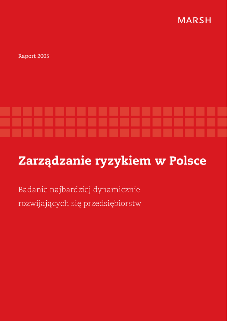 Raport 2005 Zarządzanie ryzykiem w Polsce Badanie najbardziej dynamicznie rozwijających się przedsiębiorstw Wprowadzenie Na początku 2005 roku, Marsh we współpracy z ogólnopolskim dziennikiem Puls Biznesu przeprowadził badanie najbardziej dynamicznie rozwijających się przedsiębiorstw w Polsce. Jego celem było sprawdzenie, w jaki sposób firmy podchodzą do problematyki zarządzania ryzykiem. W badaniu wzięły udział podmioty gospodarcze z całego kraju posiadające tytuł Gazeli Biznesu 2004 (więcej informacji na temat rankingu mogą Państwo znaleźć na stronach Pulsu Biznesu www.pb.pl). Przedstawiciele firm udzielali odpowiedzi na pytania zawarte w kwestionariuszach rozsyłanych do nich pocztą i faksem. W ich rezultacie otrzymaliśmy informacje dotyczące następujących obszarów: O FIRMIE MARSH Marsh jest światowym liderem na rynku usług związanych z zarządzaniem ryzykiem i ubezpieczeniami. Zatrudnia prawie 30 000 pracowników i uzyskuje roczne przychody przekraczające 5 miliardów dolarów. Firma świadczy usługi doradcze i transakcyjne w ponad 100 krajach. Marsh jest częścią struktury Marsh & McLennan Companies (MMC), globalnej grupy świadczącej profesjonalne usługi, której liczba pracowników wynosi około 60 000, a roczne przychody przekraczają 12 miliardów dolarów. W skład grupy MMC wchodzą także: n Guy Carpenter n zagrożenia będące źródłem największego niepokoju dla firm działających w Polsce n Kroll n rodzaje działań podejmowanych przez n Putnam Investments przedsiębiorstwa w związku z tymi zagrożeniami n Mercer. n odpowiedzialność za zarządzanie ryzykiem w organizacji Grupa MMC notowana jest na giełdzie w Nowym Jorku, Chicago, Pacific i w Londynie. n częstotliwość dokonywania przeglądu ryzyk towarzyszących działalności gospodarczej. Przekazując Państwu wyniki naszego badania chcemy podkreślić, że są one jedną z pierwszych tego typu analiz problematyki zarządzania ryzykiem dotyczącą polskich przedsiębiorców. Zawarte w raporcie dane odzwierciedlają poziom znajomości powyższego tematu wśród zarządów spółek i stopień ich zaangażowania w ten proces. Mamy nadzieję, że dostarczone w ten sposób informacje będą stanowić istotny przyczynek do rozwoju tej nowoczesnej koncepcji zarządzania w naszym kraju. Wierzymy także, że szerzenie wiedzy na ten temat wesprze wiele przedsiębiorstw w budowaniu silnej przewagi konkurencyjnej w oparciu o proces zarządzania ryzykiem. Bardzo dziękujemy wszystkim firmom, które wzięły udział w badaniu. Dziękujemy także redakcji Pulsu Biznesu za okazaną pomoc i zaangażowanie w proces badawczy. W Polsce Marsh działa od 1992 roku świadcząc usługi dla blisko 1500 polskich i międzynarodowych klientów. Marsh Polska zatrudnia 90 pracowników, w tym 62 profesjonalnych brokerów. Spółka oferuje pełen wachlarz usług z zakresu zarządzania ryzykiem oraz konsultacje dotyczące ubezpieczeń. Umożliwiamy naszym klientom właściwą identyfikację, ocenę, kontrolowanie, transfer oraz finansowanie ryzyka. Dzięki nowoczesnym narzędziom i podejściu do zarządzania ryzykiem, pomagamy naszym klientom w identyfikacji zagrożeń dotyczących zarówno zdarzeń losowych, jak i ryzyk strategicznych, operacyjnych czy finansowych. Zespół Marsh Polska Patron medialny badania 2 Streszczenie raportu Niniejsze badanie służyło poznaniu opinii kadry kierowniczej polskich przedsiębiorstw na temat sposobu zarządzania ryzykiem w ich organizacjach. Naszymi respondentami w głównej mierze byli: n właściciele firm n dyrektorzy zarządzający / generalni n dyrektorzy finansowi (patrz ilustracja nr 1) Ilustracja nr 1 – udział reprezentantów poszczególnych stanowisk w ogólnej strukturze respondentów. Powyższe zagrożenia reprezentują wszystkie kategorie ryzyka, które w/g metodologii Marsh dzieli się na: strategiczne, operacyjne, losowe i finansowe. Na uwagę zasługuje jednak fakt, że ostatnia z wymienionych kategorii (ryzyka finansowe) została – pod różnymi postaciami – wymieniona przez respondentów aż trzykrotnie, co sugeruje, że zagrożenia z tego właśnie obszaru stwarzają przedsiębiorcom w Polsce poważne problemy. Ponad 70% przedsiębiorców deklaruje częstsze niż dwa lata temu przeglądy zagrożeń, na które narażona jest ich firma. Wynik ten sugeruje wzrost zainteresowania menedżerów zagadnieniami z zakresu zarządzania ryzykiem i większą świadomość wpływu ustrukturyzowanych działań z tego obszaru na wyniki firmy. Główne wnioski z badania: �� �� n Zarówno ryzyka z kategorii finansowych, jak i strategicznych, �� operacyjnych i losowych zostały wskazane jako źródła potencjalnych zagrożeń dla działalności biznesowej polskich firm. �� n Dość duże różnice można zauważyć analizując stopień zaangażowania przedsiębiorców w redukcję poszczególnych ryzyk poprzez wprowadzenie właściwych procedur zarządzania. �� � n Zagrożenia losowe wydają się być zarządzane �� �������� ������������ ������ ������� �������� ���������� ��������������� ������������ �������� ���������� ���������� �������� ������������ w sposób najbardziej świadomy i aktywny. n W około 70% przypadków firmy deklarują istnienie procedur mających na celu redukcję lub eliminację ryzyk finansowych związanych z terminowością płatności kontrahentów. n Mniej niż połowa przedsiębiorców deklaruje wprowadzanie Najczęściej wskazywanymi obszarami ryzyka stanowiącymi największe zagrożenie dla przedsiębiorców okazały się: n brak płatności ze strony kluczowych klientów n wzrost konkurencji n niemożność terminowego wywiązywania się dłużników z ich z