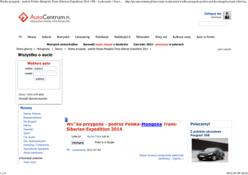 Wielka przygoda - podró Polska-Mongolia Trans-Siberian Expedition 2014 • PR - wydarzenia • News... http://pr.autocentrum.pl/newsy/pr-wydarzenia/wielka-przygoda-podroz-polska-mongolia-trans-siberian... , ! % & ' ( ( ( ) * +* ', + + % -. * " * #$ /0 ( &> B % $ $ 1 2345/ 6 /07 * 8 9 ' : ; * < = % > !" ( &' # $ " , " %* " $ ! $* %$ = " ?: $ " 1z9 * C B D ) %* + * ; # -. Pole to w Google @ / +3+0 & 2 + * , +A ( 2012-07-09 10:03 Wielka przygoda - podró Polska-Mongolia Trans-Siberian Expedition 2014 • PR - wydarzenia • News... http://pr.autocentrum.pl/newsy/pr-wydarzenia/wielka-przygoda-podroz-polska-mongolia-trans-siberian... %* * / % * 0 % 3 4 #6 967: 8$;8 " E * 1 1* F $ $ 23 ! 5" %! :<&;: 8 &="&/:$: 6 1 23 2 ! 1 1 $ "678 / (5 ? * H @ $ $ *$ $ = P @ ;)% * $ &2 # ; * "= F $ ,2 + * 1$ BD $ ! ' H* H B+ ' H : HI *B H & H H >' A ' %= ' J &$ > ,B+ BH H H@ B HH B $ $ $ $ $ $ ) $@ , ' = * $ H $ @ @ B> * & = +* * = M * @ & ;)" E%" $ @* = * H 2 @ Q O *& H& * 9& &,8"6#> ?) $8@ :A,8 ,A?65 5 5 = %* ' 1* ' * F B& B 9 =* $ > <* * J +J A > K$ $ > G * & *$ & @ $ A > $ &$ & $ ' &$ B =L H B@ * $ & &$ ,L B +M $ = $ 8 $ H , = " A , #$ @$ *' @, = = * <$ =@ * $ *'& * > $ * * & C @"%1 $@, $ *B* $ $ & : @, = &$@ * BD L , H,&$ H $@ $L $ & H + ; = = , > * * & = $ 1 A =* G & * ! " # M & 1* , / # %H ** $ , &$ A + @& B@ * =B $ $ $@* ,* * : & = =) ' * & * $ * * * $ > M $O ! * $ *B * > = &$ &, H H@ B* G $ @, > H 6 = F * * $ & $ &N $@ * * * &B* / H $ $ > @* *B % %* & > G ' +) : /O$$ $ &* > F* 2z9 = $ = > $ $ & O$ =$ /N , $ & * $ ) * , $ > * " O $ * H & $& $ 2012-07-09 10:03 Wielka przygoda - podró Polska-Mongolia Trans-Siberian Expedition 2014 • PR - wydarzenia • News... http://pr.autocentrum.pl/newsy/pr-wydarzenia/wielka-przygoda-podroz-polska-mongolia-trans-siberian... Q $ * *& 1 > C" D E3 - " , & = > $ 1 F + *B + EE * * * + A * $ $ * ' *B C $ $8 $ $ & B* $ &* H@ * , B = /@ 0./@ 0$ * & *$ & 0 '@ * G $* $ = $ B & $ * , L * L$ 9 G B$ ? @ / $ 6 & * ' >' $ = B $ > $ $ 6 , * $ * 8 & * * * * $* + * B@ , & $ H H * $, H $ B $: A $ =' * * &, *& & * , $ G $ '@ & @, * ' $ * ' * = * $ I * 0 '@ $ = * B L , L* * * G = B* * 8) * &$ $ $ L* L 5 # C B D C 8 '@ ' H 5 20@ N3M A$ ) & *& " $ > # A * $ >< * = & * * &$ @ + B $ $ = $ & $ * * H B * $ = 6 > * $* $ B 3O * /@ M H $ >+ @ : 8) $B * & * > * : @ ' $ H $ * > * B * * ' * = $ $ ' = $ * *& $ $* F H $ $ =* ' @ * * $ * $* * + , > B, > $ = $, > G = * * * > $ * : $+ ) , $ ) * & B$ B + $ * > H ,$ H B * * > @ = * * B '= * $ * +L $&> $ * * M ' +- * * $ > / '@ ' &L ' 6 " < = H * B* R @C B @S @ &> $ *= 2 @ &M 8 @ $ = $ * * + '$ 6 8 + % & + ! 6 C 8 + ! 6 S 8 + + + ? 6 ; 3z9 B* H 6& ' 8$ >2 & 8 2012-07-09 10:03 Wielka przygoda - podró Polska-Mongolia Trans-Siberian Expedition 2014 • PR - wydarzenia • News... http://pr.autocentrum.pl/newsy/pr-wydarzenia/wielka-przygoda-podroz-polska-mongolia-trans-siberian... + ! = 6 + % = ; + A = + E& ; 6 + ! $6 & % 6 $8% + $ * 8 ? $* $ ; 8 @' =8 * + & /NM &O $ 6 = $ 8 & /M $ $ !"# & B* * & @, * * & & J&);68,K8 H * B+ H B > = J G $ $ 1H6 H * &+ < I $ % )* , - & '( + . /.& / 0 1 2 34 5*0 1 6. + 2 , . * !"" # $% 7 . 8 . */09 /% % 91 * %/ 780 :/ ;, - $ 8 8 '<== . 6 , * 4z9 .> . */ 2012-07-09 10:03 Wielka przygoda - podró Polska-Mongolia Trans-Siberian Expedition 2014 • PR - wydarzenia • News... http://pr.autocentrum.pl/newsy/pr-wydarzenia/wielka-przygoda-podroz-polska-mongolia-trans-siberian... 5z9 2012-07-09 10:03 Wielka przygoda - podró Polska-Mongolia Trans-Siberian Expedition 2014 • PR - wydarzenia • News... http://pr.autocentrum.pl/newsy/pr-wydarzenia/wielka-przygoda-podroz-polska-mongolia-trans-siberian... 6z9 2012-07-09 10:03 Wielka przygoda - podró Polska-Mongolia Trans-Siberian Expedition 2014 • PR - wydarzenia • News... http://pr.autocentrum.pl/newsy/pr-wydarzenia/wielka-przygoda-podroz-polska-mongolia-trans-siberian... 8 7z9 5 L $ 2012-07-09 10:03 Wielka przygoda - podró Polska-Mongolia Trans-Siberian Expedition 2014 • PR - wydarzenia • News... http://pr.autocentrum.pl/newsy/pr-wydarzenia/wielka-przygoda-podroz-polska-mongolia-trans-siberian... 20 Ford Falcon GT - pantera na stepach 2 Honda 8 Lancia Flavia trafi na wybrane rynki 9 Co je li nie licencyjny Fiat 126p? dni w Europie temu autocentrum.pl 4 In ynier Microsoftu odkrywa botnet 1 Samsung Galaxy Beam z trafia na wyprzeda 12 Microsoft wbija nó w plecy Nokii. z Windows Phone 8 11 Tablet Google stał si faktem godz projektorem temu nt.interia.pl dni Własny smartfon temu komorkomania.pl godz autocentrum.pl temu Sedan dla oszcz dnych - Renault dni Thalia (1999-2008) temu autocentrum.pl 1 Seryjne fotki dla ka dego smartfona z dni w Androidzie temu komorkomania.pl dni autocentrum.pl temu 19 19 dni Androidem temu technowinki.onet.pl godz australijskich temu autocentrum.pl dni technowinki.onet.pl temu 4 Poradnik kupuj cego - klasa rednia Bloomberg: iPad mini ju w dni pa dzierniku temu technowinki.onet.pl dni autocentrum.pl temu B * & -.* * * , +A ' * &> B > * D % $ =' " / K = * G ) 8z9 $$ * * +* ', B + 2012-07-09 10:03 Wielka przygoda - podró Polska-Mongolia Trans-Siberian Expedition 2014 • PR - wydarzenia • News... http://pr.autocentrum.pl/newsy/pr-wydarzenia/wielka-przygoda-podroz-polska-mongolia-trans-siberian... + % #$ * -.* < /0 * G *2 / 9z9 2012-07-09 10:03