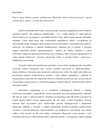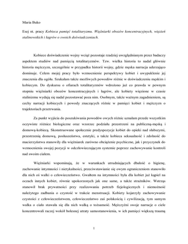Maria Buko Esej nt. pracy Kobieca pamięć totalitaryzmu. Więźniarki