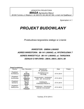 PROJEKT BUDOWLANY Przebudowa targowiska stałego w Lnianie