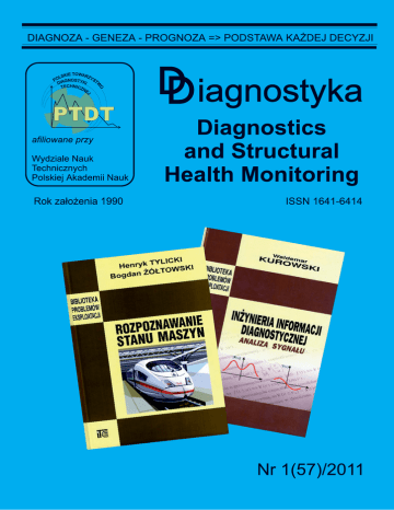 RADA PROGRAMOWA / PROGRAM COUNCIL PRZEWODNICZĄCY / CHAIRMAN: prof. dr hab. dr h.c. mult. Czesław CEMPEL Politechnika Poznańska REDAKTOR NACZELNY / CHIEF EDITOR: prof. dr hab. inż. Ryszard MICHALSKI UWM w Olsztynie CZŁONKOWIE / MEMBERS: prof. dr hab. inż. Jan ADAMCZYK AGH w Krakowie prof. dr hab. inż. Jerzy KISILOWSKI Politechnika Warszawska Prof. Francesco AYMERICH University of Cagliari − Italy prof. dr hab. inż. Daniel KUJAWSKI Western Michigan University – USA prof. Jérôme ANTONI University of Technology of Compiegne – France prof. Graeme MANSON University of Sheffield − UK prof. dr. Ioannis ANTONIADIS National Technical University Of Athens – Greece prof. dr hab. Wojciech MOCZULSKI Politechnika Śląska dr inż. Roman BARCZEWSKI Politechnika Poznańska prof. dr hab. inż. Stanisław NIZIŃSKI UWM w Olsztynie prof. dr hab. inż. Walter BARTELMUS Politechnika Wrocławska prof. dr hab. inż. Stanisław RADKOWSKI Politechnika Warszawska prof. dr hab. inż. Wojciech BATKO AGH w Krakowie prof. Bob RANDALL University of South Wales – Australia prof. dr hab. inż. Lesław BĘDKOWSKI WAT Warszawa prof. dr Raj B. K. N. RAO President COMADEM International – England prof. dr hab. inż. Adam CHARCHALIS Akademia Morska w Gdyni prof. Vasily S. SHEVCHENKO BSSR Academy of Sciences Mińsk – Belarus prof. Li CHENG The Hong Kong Polytechnic University – China prof. Menad SIDAHMED University of Technology Compiegne – France prof. dr hab. inż. Wojciech CHOLEWA Politechnika Śląska Prof. Tadeusz STEPINSKI Uppsala University - Sweden prof. dr hab. inż. Zbigniew DĄBROWSKI Politechnika Warszawska Prof. Wiesław TRĄMPCZYŃSKI Politechnika Świętokrzyska Prof. Charles FARRAR Los Alamos National Laboratory – USA prof. dr hab. inż. Tadeusz UHL AGH w Krakowie prof. Wiktor FRID Royal Institute of Technology in Stockholm – Sweden prof. Vitalijus VOLKOVAS Kaunas University of Technology – Lithuania dr inż. Tomasz GAŁKA Instytut Energetyki w Warszawie prof. Keith WORDEN University of Sheffield − UK prof. Len GELMAN Cranfield University – England prof. dr hab. inż. Andrzej WILK Politechnika Śląska prof. Mohamed HADDAR National School of Engineers of Sfax – Tunisia dr Gajraj Singh YADAVA Indian Institute of Technology – India prof. dr hab. inż. Jan KICIŃSKI IMP w Gdańsku prof. dr hab. inż. Bogdan ŻÓŁTOWSKI UTP w Bydgoszczy WYDAWCA: Polskie Towarzystwo Diagnostyki Technicznej ul. Narbutta 84 02-524 Warszawa REDAKTOR NACZELNY: prof. dr hab. inż. Ryszard MICHALSKI SEKRETARZ REDAKCJI: dr inż. Sławomir WIERZBICKI CZŁONKOWIE KOMITETU REDAKCYJNEGO: dr inż. Krzysztof LIGIER dr inż. Paweł MIKOŁAJCZAK ADRES REDAKCJI: Redakcja Diagnostyki Katedra Budowy, Eksploatacji Pojazdów i Maszyn UWM w Olsztynie ul. Oczapowskiego 11, 10-736 Olsztyn, Poland tel.: 89-523-48-11, fax: 89-523-34-63 www.diagnostyka.net.pl e-mail: [email protected] KONTO PTDT: Bank PEKAO SA O/Warszawa nr konta: 33 1240 5963 1111 0000 4796 8376 NAKŁAD: 500 egzemplarzy DIAGNOSTYKA - DIAGNOSTICS AND STRUCTURAL HEALTH MONITORING’ 1(57)/2011 Spis treści / Contents Szymon GONTARZ, Stanisław RADKOWSKI – Politechnika Warszawska .........................................................3 Magnetic methods in diagnosis of machines and infrastructural objects – a survey Metody magnetyczne w diagnostyce maszyn i obiektów infrastruktury – przegląd Krzysztof MENDROK, Wojciech MAJ, Tadeusz UHL – AGH Kraków..............................................................13 Laboratory tests of the SHM system based on modal filtration Badania laboratoryjne układu monitoringu bazującego na filtracji modalnej Janusz SEMPRUCH, Dariusz SKIBICKI – Uniwersytet Technologiczno-Przyrodniczy w Bydgoszczy .............21 Identification and modeling of multiaxial fatigue loading non-proportionality Identyfikacja i modelowanie nieproporcjonalności wieloosiowego obciążenia zmęczeniowego Henryk KAŹMIERCZAK, Tadeusz PAWŁOWSKI, Jacek KROMULSKI – Przemysłowy Instytut Maszyn Rolniczych w Poznaniu..........................................................................................................................................25 Energetic modes in description of structural degradation of constructional materials Mody energetyczne w opisie degradacji strukturalnej materiałów konstrukcyjnych Piotr CZOP – AGH Kraków ..................................................................................................................................31 Demonstration of a grey-box approach towards the diagnostics of a feedwater heater (Part I) – model development Demonstracja podejścia "grey-box" do diagnostyki wymiennika wody zasilającej (Cześć I) - rozwój modelu Piotr CZOP – AGH Kraków ..................................................................................................................................39 Demonstration of a grey-box approach towards the diagnostics of a feedwater heater (Part II) – model tuning based on operational data Demonstracja podejścia "grey-box" do diagnostyki podgrzewacza wody zasilającej (Cześć II) - strojenie modelu na podstawie danych operacyjnych Paweł SZCZEPAŃSKI ..........................................................................................................................................47 Erroneous use of Bayes’ theorem in technical diagnostic Błędne użycie wzoru Bayesa w diagnostyce technicznej Czesław CEMPEL – Politechnika Poznańska........................................................................................................55 Diagnostyka techniczna – spojrzenie syntetyczne Machine condition monitoring – historic overview Wspomnienie prof. dr hab. inż. Lesława Będkowskiego .......................................................................................68 Wspomnienie prof. dr hab. inż. Henryka Madeja ..................................................................................................71 