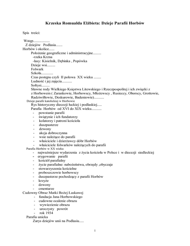 Krzeska Romualda Elżbieta: Dzieje Parafii Horbów