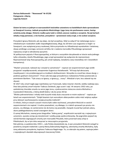 Dariusz Baliszewski - "Newsweek" Nr 07/02 Pożegnanie z Marią