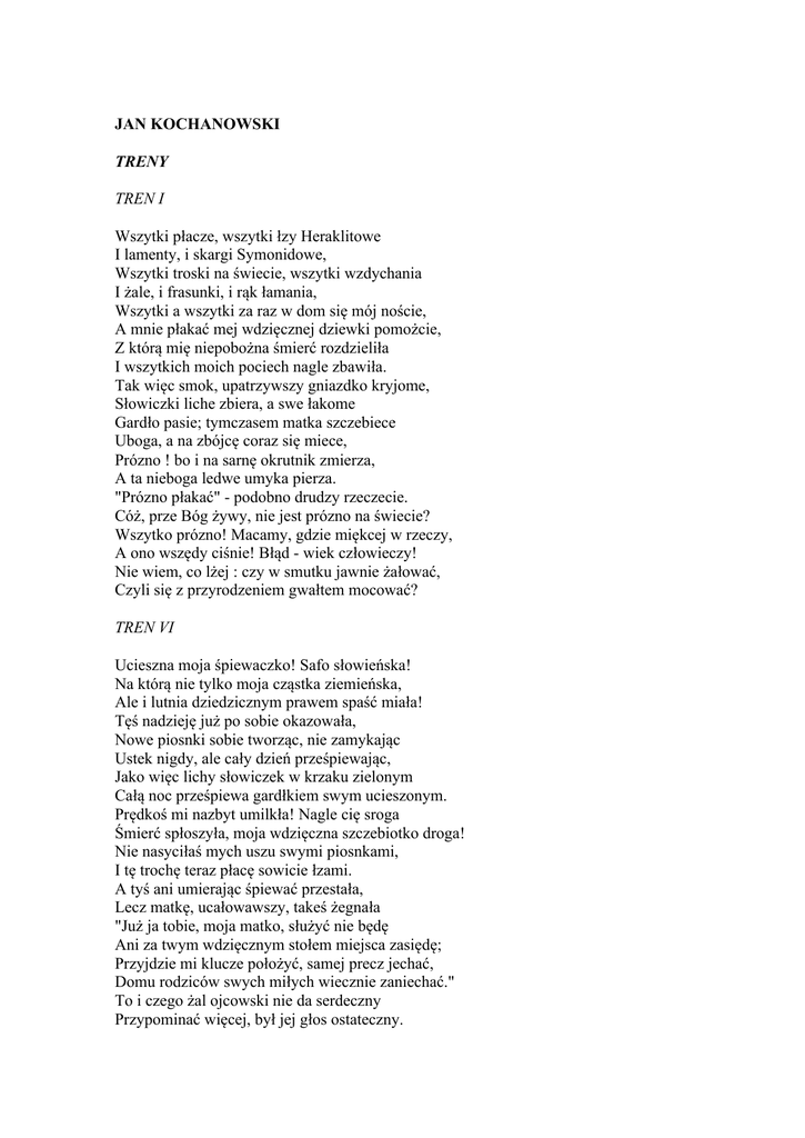 JAN KOCHANOWSKI TRENY TREN I Wszytki płacze, wszytki łzy