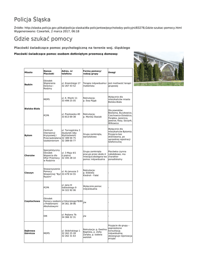 Policja Śląska Gdzie szukać pomocy