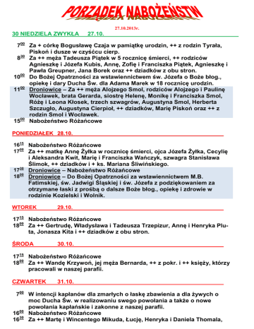 30 NIEDZIELA ZWYKŁA 27.10. 7 Za + córkę Bogusławę Czaja w
