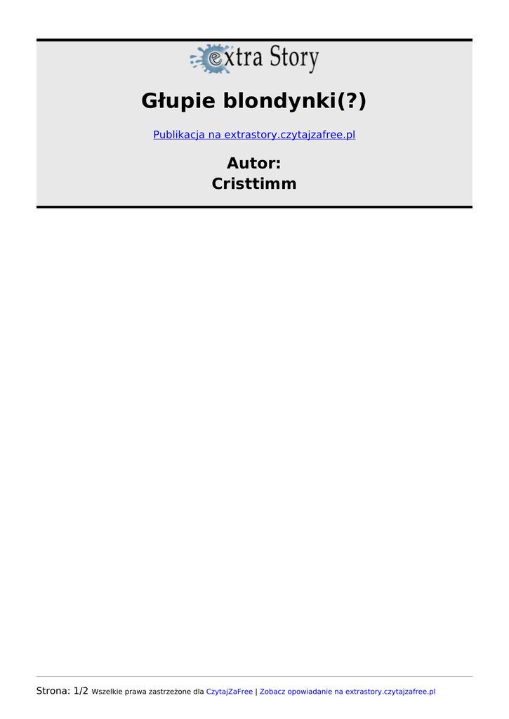 Głupie blondynki(?) Publikacja na extrastory.czytajzafree.pl Autor: Cristtimm Strona: 1/2 Wszelkie prawa zastrzeżone dla CzytajZaFree | Zobacz opowiadanie na extrastory.czytajzafree.pl Po co blondynka stawia wieczorem na stoliku nocnym dwie szklanki: jedną z wodą, drugą pustą? - Bo nie wie, czy rano będzie się jej chciało pić, czy nie. Konia z rzędem temu, kto nie zna, nie słyszał lub sam nie opowiadał kawałów o blondynkach? Krąży ich mnóstwo, utrwalając stereotyp blondwłosej, głupiutkiej, choć pełnej sex appeal’u, a czasem bardzo sprytnej dziewczyny. Obraz blondynki, jako osoby niezbyt inteligentnej (by nie rzec – kompletnej idiotki) utrwalił jako stereotyp na tyle mocno, że wszedł w kanon codzienności i wyrzut typu „nie bądź blondynką” bez problemu rozszyfrowywany jest jako surowe napomnienie, ku sięgnięciu do pokładów inteligencji i rozsądku. Jakiś czas temu podczas wyborów miss na Akademii Wychowania Fizycznego, doktor - juror nie mógł się powstrzymać od złośliwości i zapytał jedną z kandydatek ile waży cała cegła, skoro pół cegły waży kilogram. Gdy dziewczyna poprosiła o powtórzenie pytania, wypalił: No przecież nie jest pani blondynką! Został co prawda wygwizdany przez publiczność, jednak jego wypowiedź dokładnie wpisała się, we współczesny schemat, jaki o blondwłosych kobietach został wytworzony. Same blondynki często podchodzą do tego stereotypu z humorem i dystansem, a mając wysoki stopień samooceny zdają sobie sprawę, że rewelacje o nich nierzadko są równie mocno poparte dowodami, jak historyjki o UFO. Niby widziano, niby nawet ktoś miał z nimi bliski kontakt, a jak co do czego przychodzi, to okazuje się, że widział w filmie lub serialu, a kontakt miał poprzez zasłyszaną opowieść sąsiada. Ciekawe jest jednak kiedy tak naprawdę w historii naszej cywilizacji blondynki „straciły rozum”? Okazuje się, że wcale nie tak dawno. Z akademickich badań wynika, że jasne włosy i niebieskie oczy pojawiły się w Europie pod koniec epoki lodowcowej - w czasach, kiedy brakowało żywności i mężczyzn, którzy ginęli na polowaniach. Jasnowłose kobiety objawiły się jako rzadka mutacja, ich liczba jednak wzrastała, bowiem wyróżniały się, więc miały większe szanse w pojedynku o partnera. Potem, na przestrzeni wieków, blond włosy stawały się symbolem ukrytych pragnień i w zależności od epoki utożsamiane były z czystością, czy nawet wręcz anielskością, lub ze skrywanymi żądzami, jednak nie ma wzmianek, aby z głupotą. Nawet klasyczny „Młot na czarownice” nieszczególnie piętnuje panie o jasnych włosach, egalitarnie upatrując w każdej kobiecie grzesznego i prymitywnego stworzenia, świetne nadającego się na potencjalne wcielenie diabła. Kiedy więc można w annałach dopatrzeć się pierwszej, udokumentowanej „głupiej blondynki”? Historyk Joanna Pitman przypisała to „zaszczytne miano” pięknej Francuzce, Catherine-Rosalie Gerard Duthé, która urodziła się w 1748 i zrobiła oszałamiającą karierę jako tancerka. Zwróciła na siebie uwagę wielu dzielnych synów arystokracji, a co najważniejsze hrabiego d'Artois, późniejszego króla Francji – Karola X Burbon. To nie był jednak jej jedyny kontakt z osobami królewskiego rodu . Catherine została również przedstawiona piętnastoletniemu Ludwikowi Filipowi I, objął on tron trzydzieści dwa lata później po abdykacji Karola X. Podczas tamtego spotkania miała nauczyć młodego dziedzica „pewnych faktów o życiu”. Piękna Francuska inspirowała artystów i pozowała im, nierzadko nago. Na obrazach niektórzy dopatrzyli się, że modelka musiała czasem rozjaśniać włosy pudrem, choć nie zmienia to faktu, że była naturalną blondynką, była więc również prekursorką "wspomaganych" jasnowłosych. Miano „głupiej blondynki” zawdzięcza swojemu zachowaniu na wystawnych przyjęciach. Znana była z dźwięcznego śmiechu i tego, że gdy chciała coś powiedzieć, najpierw robiła teatralną przerwę, po czym wygłaszała żenująco prostoduszne mądrości. Catherine stała się obiektem żartów wśród arystokracji, powstała nawet sztuka teatralna poświęcona jej głupocie. Jednak sam stereotyp niemądrej blond piękności powstał później, bo w XIX-wiecznej Anglii. Jedna z brytyjskich trup komediowych wystawiła parodię greckiego mitu o królu Iksionie. Przedstawienie szybko stało się sensacją bowiem występujące w nim cztery ponętne, roznegliżowane, płowowłose piękności wzburzyły moralistów. Grzmiano, że aktorki nie potrafią grać, a pełna widownia na spektaklach to jedynie zasługa ich atrakcyjnego wyglądu i epatowania erotyzmem. W gazetach pojawiło się określenie „brytyjskie blondynki” , z czasem zamienione na „dizzy blondes”, gdzie dizzy oznaczało "naiwny", "głupi". Stereotyp głupiej blondynki na dobre zagościł w naszej świadomości za sprawą kina lat 50-tych XX wieku. Ogromną w tym rolę miał film "Mężczyźni wolą blondynki" z niezapomnianą Marilyn Monroe. Potem to już „poleciało” – Jayne Mansfield, Pamela Anderson, Christina Applegate jako Kelly w „Świecie według Bundych” i wiele, wiele innych ról filmowych. Niemałą zasługę w jego pogłębianiu ma najsłynniejsza lalka – Barbie. Czy blondynki są już skazane na schematyczne postrzeganie? Wiele na to wskazuje. A może zasypie nas lawina jasnowłosych laureatek Nagrody Nobla i zmieni spojrzenie na umysłowy blond-potencjał? Lub też może, przypięta etykietka zniknie dopiero wraz z noszącymi ją osobami? Ponoć to wcale nie takie science fiction i nie taka daleka przyszłość, bo naukowcy prognozują, iż za jakiś czas, na ziemi zabraknie prawdziwych, naturalnych blondynek. W ludzkiej rasie zanika gen jasnych włosów, a najbujniejsza prokreacja ma miejsce w krajach, gdzie przeważa ciemna karnacja skóry. Wyliczono, że ostatni blondyn urodzi 