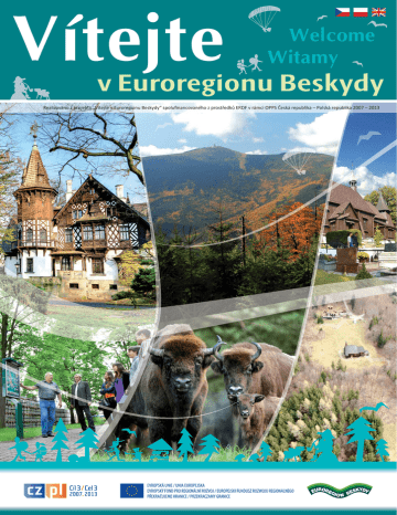 Vítejte Welcome Witamy v Euroregionu Beskydy Realizováno z projektu „Vítejte v Euroregionu Beskydy“ spolufinancovaného z prostředků ERDF v rámci OPPS Česká republika – Polská republika 2007 – 2013 Nevelká obec Pražmo leží v krásném prostředí beskydských hor v údolí řeky Morávky. Krása zdejšího okolí a zájem o život beskydských horalů přivedly do těchto míst i slezského básníka Petra Bezruče. Pražmo zmiňuje hned v několika básních. Na zdejším hřbitově je také pochována „jeho“ slavná Maryčka Magdónová. Vesnice byla založena zakládací lis nou v roce 1777. Při svém založení dostala obec do znaku jelena stojícího mezi dvěma jedlemi. Počet obyvatel obce se výrazně zvýšil v 70. a 80. letech minulého stole , kdy Lesní závod Frýdek-Místek přestavěl zastaralé dílny na velké opravárenské středisko. Kostel na Pražmě má starší historii než samotná obec. Již v roce 1762 byl postaven na místě dnes již zrušeného hřbitova dřevěný kostel. Toto území tenkrát patřilo Morávce. Občané Morávky nechtěli založením Pražma přijít o svůj kostel a žádali vrchnost, aby pozemky nadále patřily Morávce a byly takto zaknihovány. Hrabě žádos vyhověl a teprve ve druhé polovině 20. stole byly tyto pozemky převedeny Pražmu. Přesto se farnost dodnes jmenuje Morávka. Starý dřevěný kostel byl zbořen v roce 1875 a na jeho místě stojí kamenný kříž. Pražmo – v údolí Morávky Wieś Pražmo – w dolinie rzeki Morávka Niewielka wieś Pražmo otoczona pięknym Masywem Beskidów leży w dolinie rzeki Moravka. Miejsce to zachwyciło nawet sławnego śląskiego poetę Petra Bezruča. Zauroczony krajobrazami i życiem miejscowych, umieścił Pražmo w kilku swoich poematach, a dziewczyna spoczywająca dzisiaj na tutejszym cmentarzu, stała się bohaterką jego poematu Maryčka Magdónova. Według dokumentu erekcyjnego wieś założono w roku 1777. Wówczas otrzymała ona w godle jelenia z piękną koroną rogów. Ilość mieszkańców wzrosła gwałtownie w latach 70-tych i 80-tych ubiegłego wieku, gdy lokalna firma Lesní závod Frýdek-Místek przekształciła się ze staroświeckiego warsztatu w duże centrum serwisowe. Historia tutejszego kościoła jest starsza niż historia wsi. Drewniany kościół został zbudowany na terenie ówczesnego cmentarza w roku 1762. W tamtych czasach tereny te należały do wsi Moravka. Jej mieszkańcy nie chcieli utracić swojego kościoła ze względu na powstanie nowej wsi Pražmo. Poprosili więc właściciela wsi, by zatrzymał ten obszar w obrębie wsi Moravka i zarejestrował jako swoją własność. Magnat wyraził zgodę, a tereny te prawnie weszły pod zarząd wsi Pražmo dopiero w II połowie XX wieku. Parafia pozostała przy nazwie “Moravka”. Stary drewniany kościół został zburzony w 1875 roku, na jego miejscu stanął kamienny krzyż. The Village of Pražmo – in the Valley of the River Morávka Surrounded by the beau ful Beskydy Mountains, a small village of Pražmo lies in the valley of the River Morávka. Even Petr Bezruč, the famous Silesian poet, was a racted to this area by the beauty of this region and his interest in the life of local people in the Beskydy Mountains. He men ons Pražmo in several of his poems and the girl, who became the model for his famous poem Maryčka Magdónova, is buried at local graveyard. According to the founda on document, the village was established in 1777, when it was given a stag standing between two fir trees in its sign. Number of its popula on increased largely in 70ies and 80ies of the last century, when a company named Lesní závod Frýdek-Místek turned its outdated workshops into a large repair centre. The history of the church in the village of Pražmo is even older than the history of the village itself. A wooden church was built as early as in 1762 at the place of a former cemetery. The land used to belong to the village of Morávka at that me. Its ci zens did not want to lose their church due to the establishment of a new village of Pražmo and asked the nobility to keep the lands in the property of the village of Morávka and to enter them in the land register as its property. The count agreed and the lands were transferred to the village of Pražmo as late as in the second half of the 20th century. The name of the parish s ll remained Morávka, though. The old wooden church was demolished in 1875 and a stone crucifix stands at its place. Naučná stezka Prašivá Podstatou Naučné stezky Prašivá je popularizace důležitého turis ckého cíle a zároveň poutního místa na Malé Prašivé, kde se nachází od r. 1640 dřevěný kostel sv. Antonína Paduánského a kde v r. 1921 vybudovala Pobeskydská jednota slezská svou turis ckou chatu, spravovanou dnes Klubem českých turistů. Protože výstupové cesty sem míří z mnoha míst, vzniklo celkem šest naučných tras směřujících hvězdicovitě do jediného bodu. Do projektu se zapojily tyto obce: Morávka, Pražmo, Raškovice, Vyšní Lhoty, Nižní Lhoty, Nošovice, Dobra ce a Vojkovice, také Hnojník, Komorní Lhotka a Horní Domaslavice. Naučná stezka obsahuje 26 informačních tabulí a dvě vyhlídková panoramata po šes tra- sách: 1. Morávka–Prašivá, 2. Pražmo–Prašivá, 3. Nošovice–Nižní Lhoty–Vyšní Lhoty–Prašivá, 4. Raškovice–Vyšní Lhoty–Prašivá, 5. Hnojník– Komorní Lhotka–Dobra ce–Prašivá, 6. Horní Domaslavice–Vojkovice–Dobra ce–Prašivá. V každé obci, kterou prochází, je jedna tabule věnována základním místním informacím, také historickým faktům, historickým a přírodním zajímavostem případně významným osobnostem, další tabule informují např. o historii průmyslu, salašnictví, popisují pověs a legendy, jsou zde tabule i o samotné chatě na Prašivé, pivovaru Radegast a řece Morávce. Naučná stezka Prašivá t